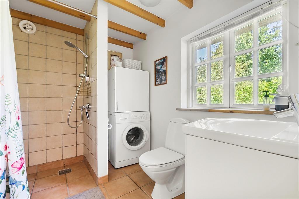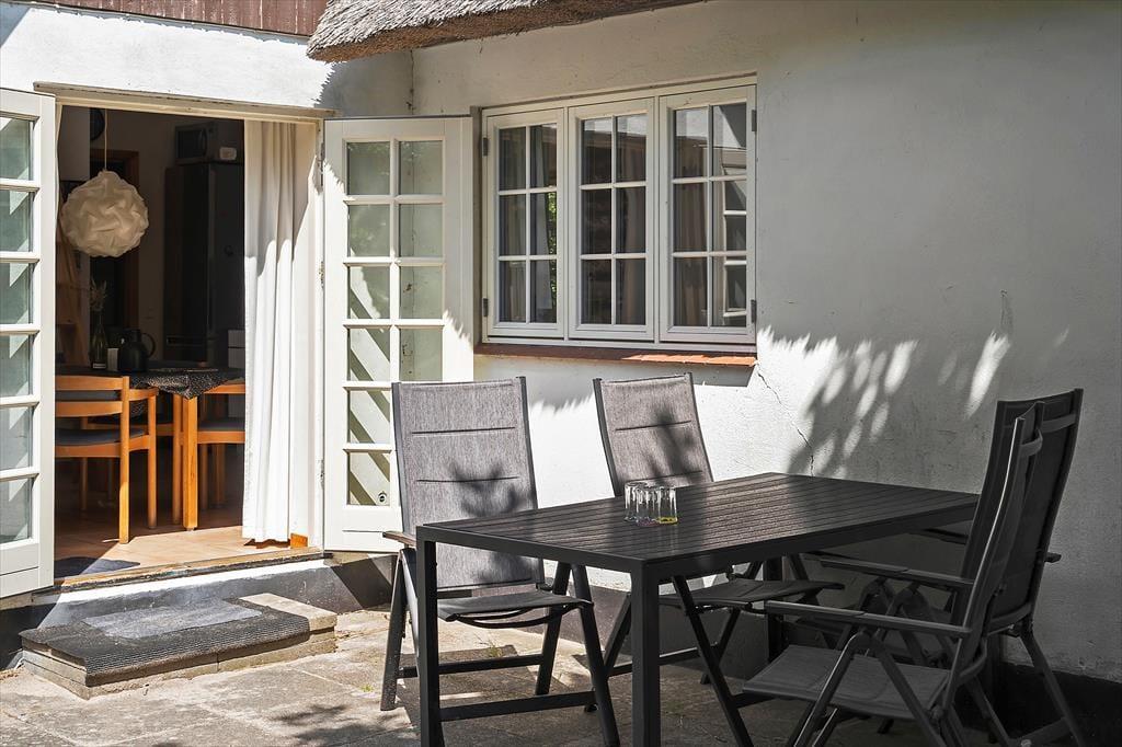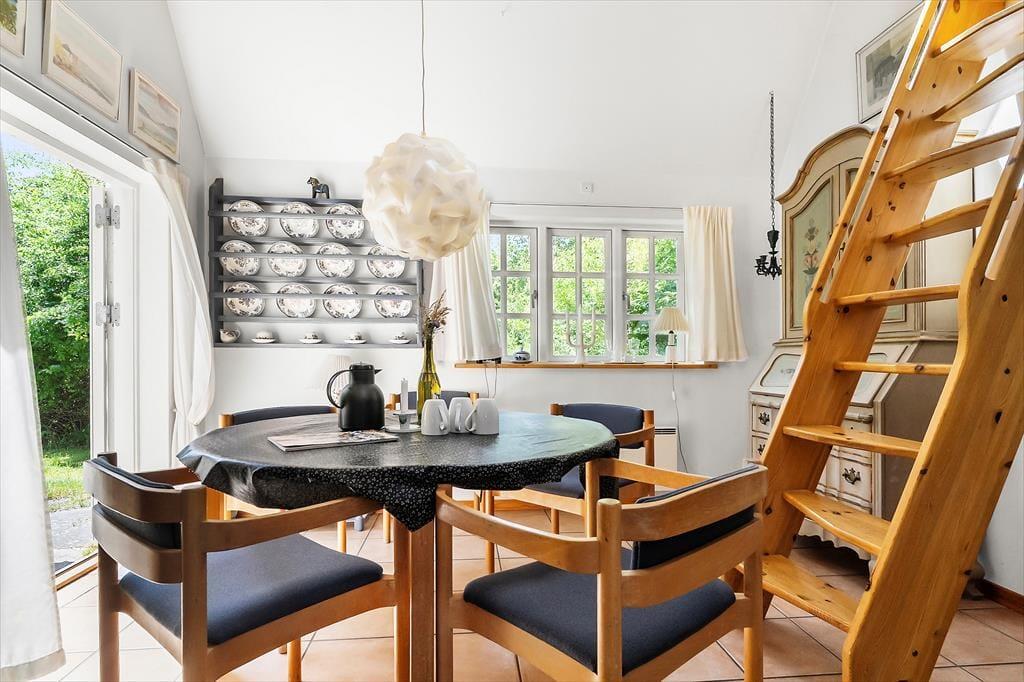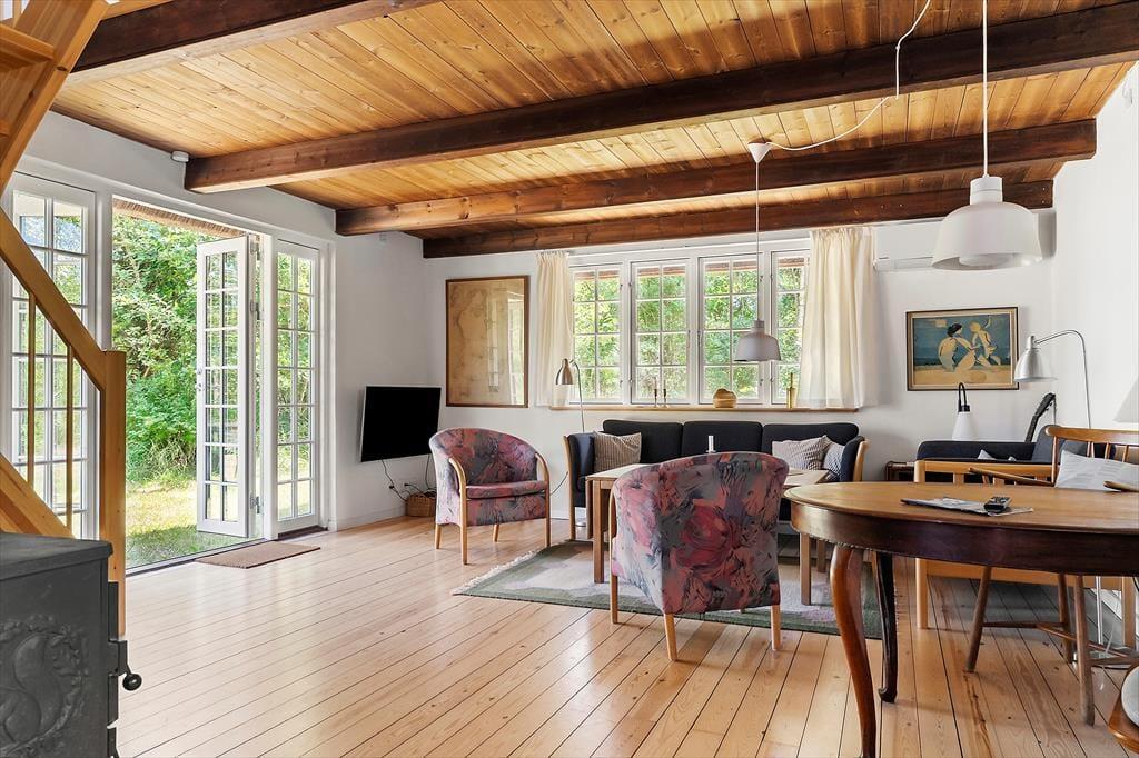 Ved siden af spiseområdet og stuen fører en havedør ud til en østvendt terrasse – oplagt til morgenkaffe i solen eller måltider under åben himmel omgivet af naturens ro.