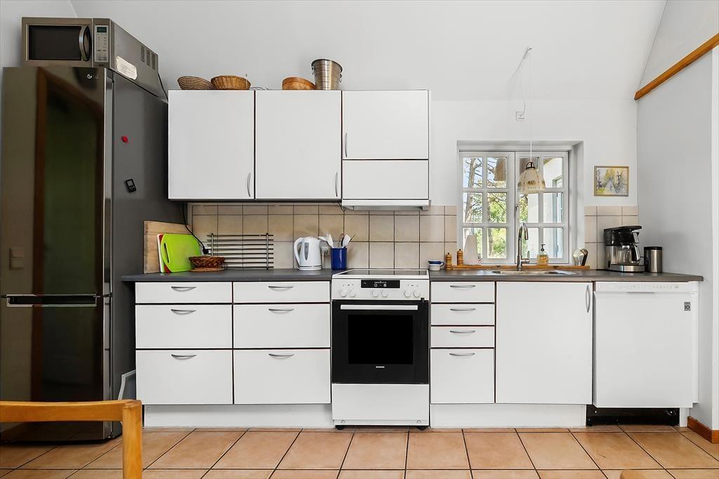 Stuen og køkkenet udgør husets naturlige samlingspunkt. Det åbne køkken gør det muligt at tilberede aftensmaden, mens du stadig kan være en del af samtalen i stuen. Køkkenet er funktionelt og veludstyret med alle nødvendige faciliteter.
