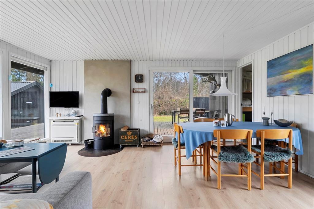 Sommerhus i Nord Samsø, Østjylland, med plads til 4 voksne og 2 børn. Der er en hyggelig indretning med bl.a. brændeovn, og du finder desuden vaskemaskine og opvaskemaskine i boligen.