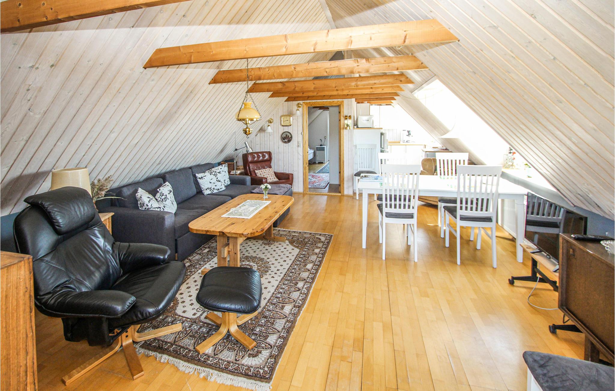 Her kan I tilbringe jeres ferie direkte ved Mårups rolige havn. Den rustikke charme i loftslejligheden, som ikke mindst skyldes de synlige loftsbjælker, gør det nemt for jer at slappe helt af her. Efter en aktiv dag på øen kan I tilberede middagen i det hyggelige køkken og nyde den fantastiske udsigt over havet, som nærmest funkler på solskinsdagene.