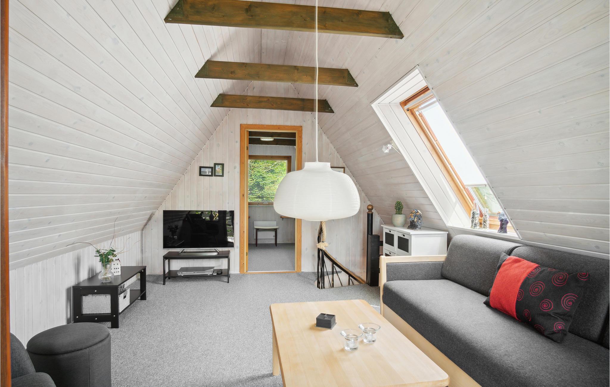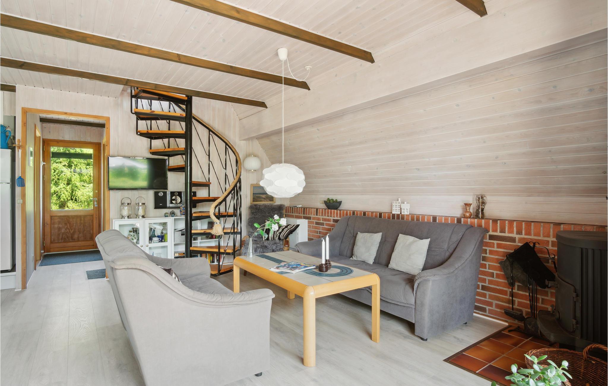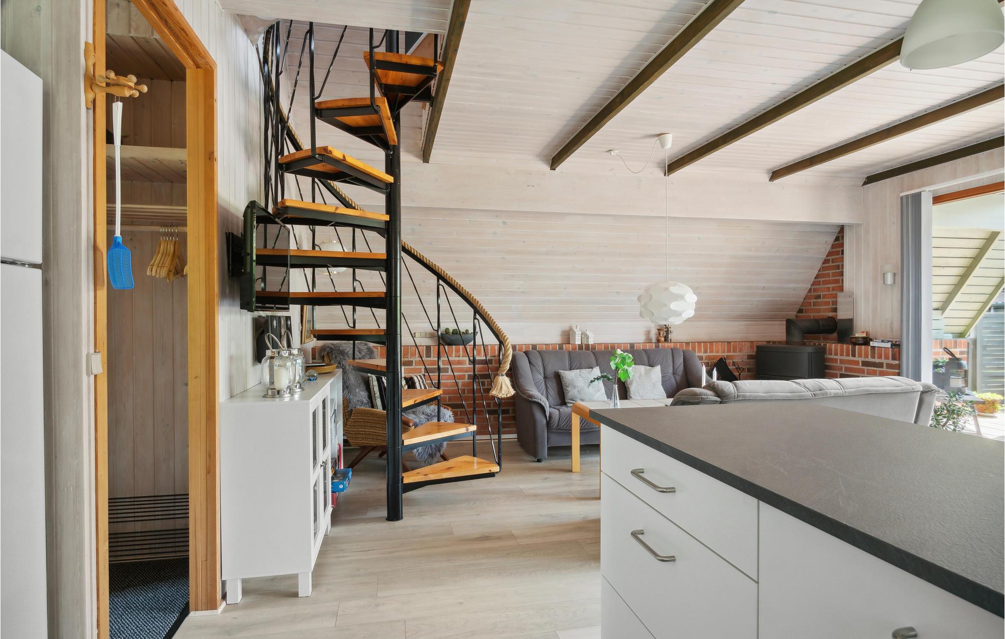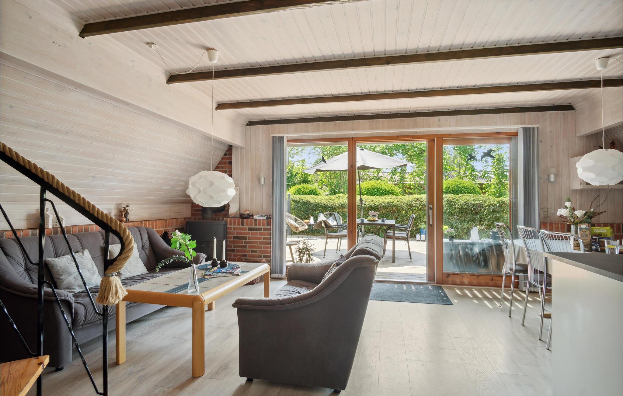 Træd ind i dette feriehus, som er enkelt og smagfuldt indrettet med sans for detaljer, og I vil straks føle jer hjemme. Den hyggelige stue med åbent køkken indbyder til at tilberede måltider sammen, og senere er sofagruppen den ideelle ramme for hyggelige aftener. Læg mere brænde i brændeovnen, og nyd flammernes hyggelige knitren.