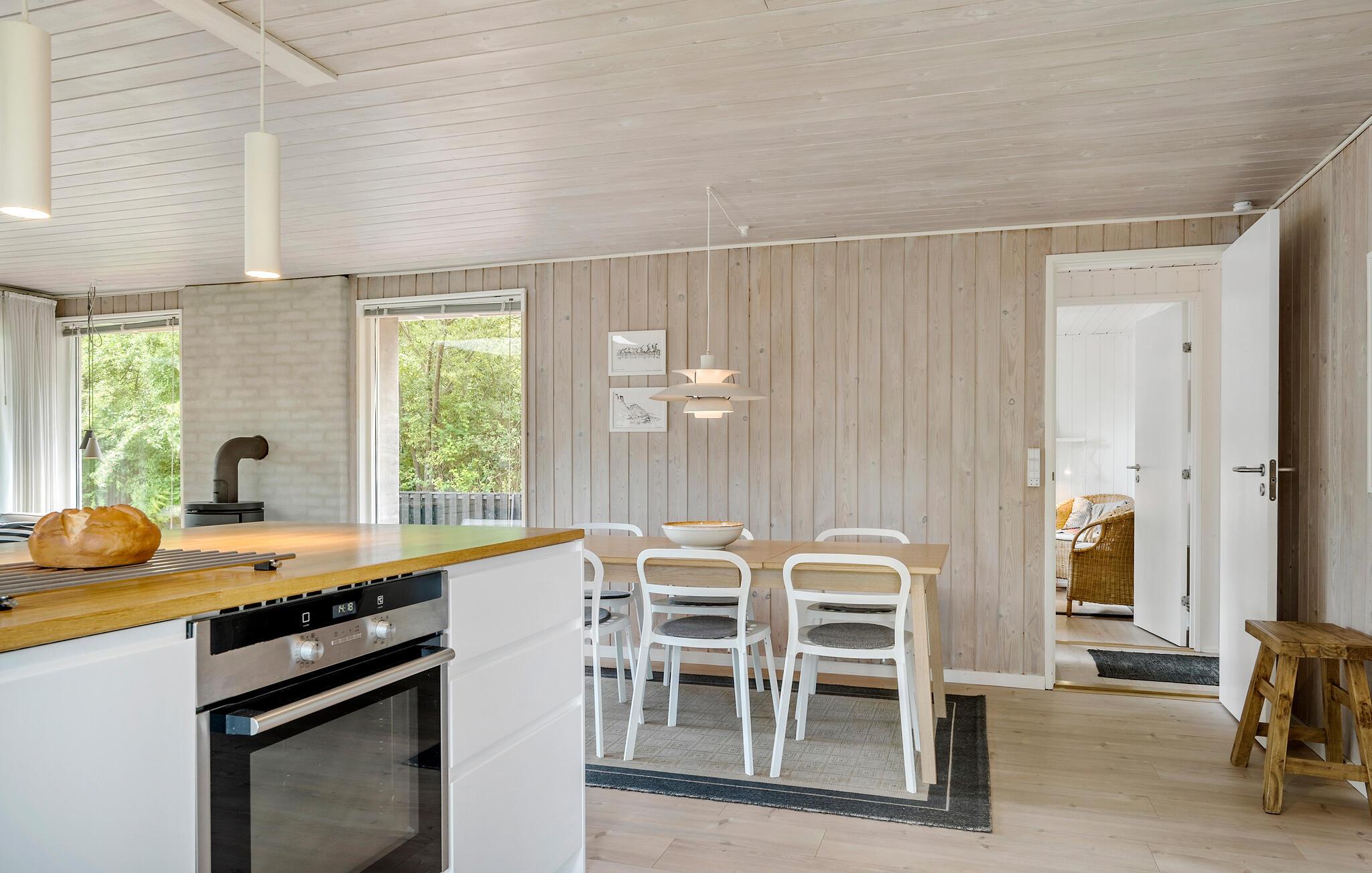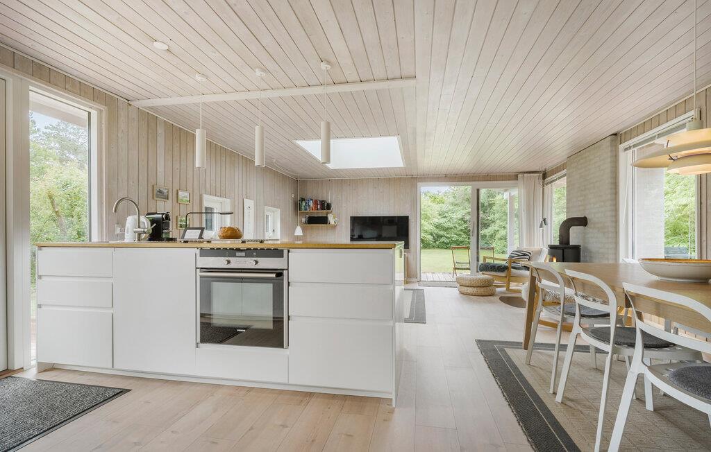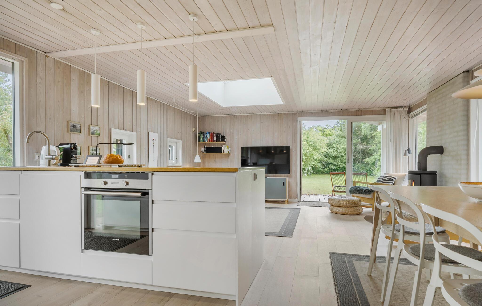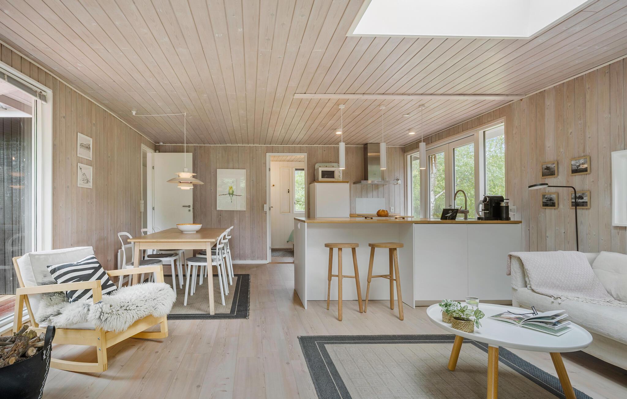 Hele familien vil føle sig hjemme i de indbydende værelser i dette hus. I det åbne køkken og opholdsrum kan I tilberede måltider sammen, mens børnene løber ind og ud af haven gennem de to døre. Efter den fælles spisning pakkes brætspillene ud, og en lang, hyggelig aften kan tage sin begyndelse - tænd op i brændeovnen, hvis hyggelige knitren bidrager til den dejlige atmosfære.