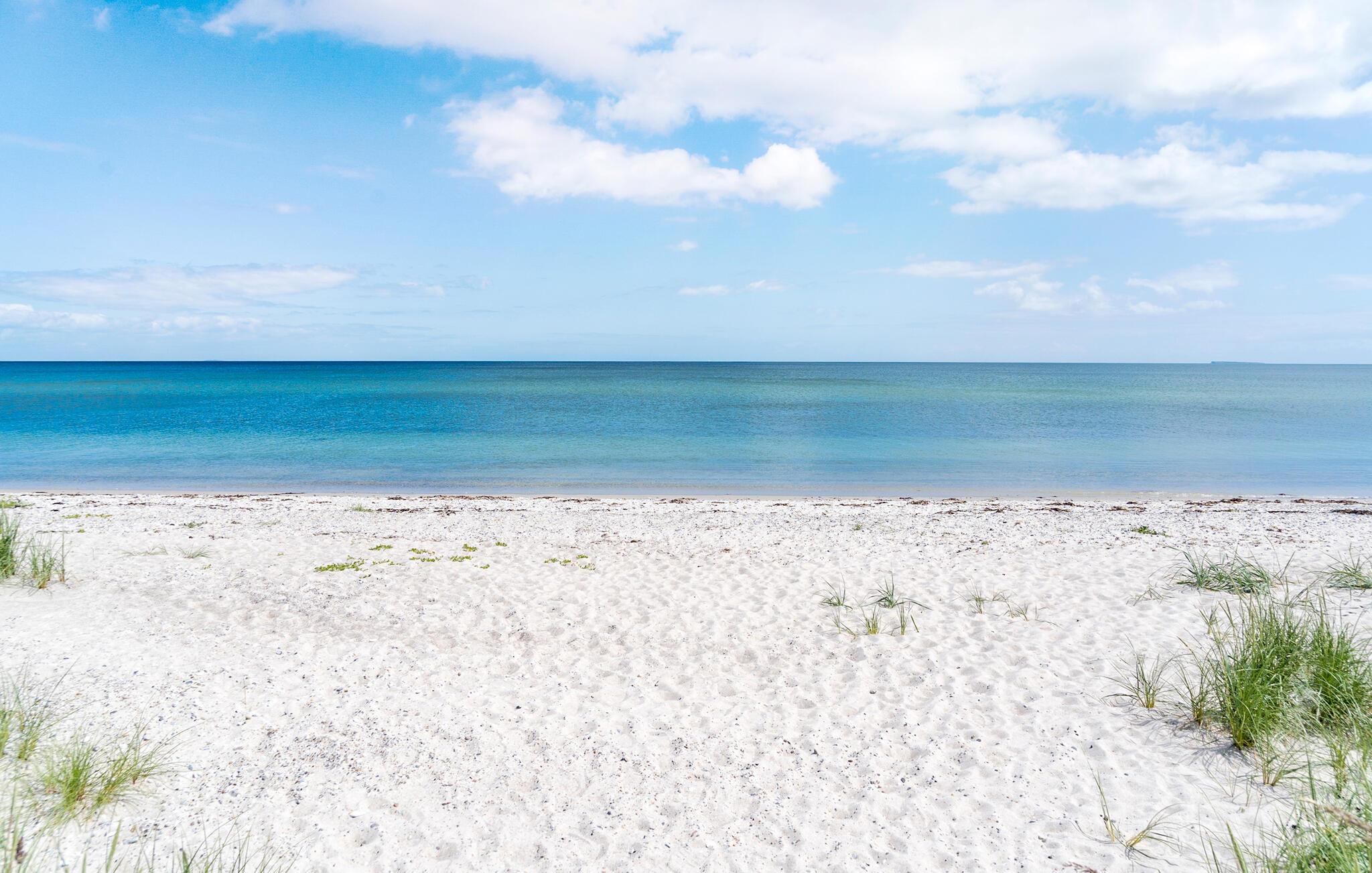 En lille sti fører fra ejendommen til den smukke badestrand.