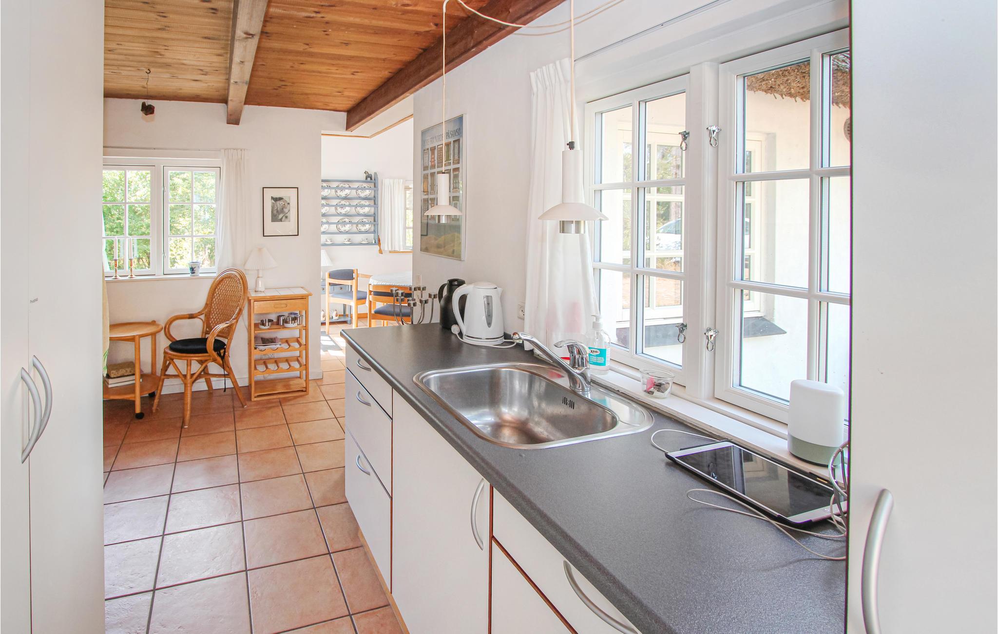 Nyd jeres ferie i dette maleriske hus med stråtag i umiddelbar nærhed af stranden.