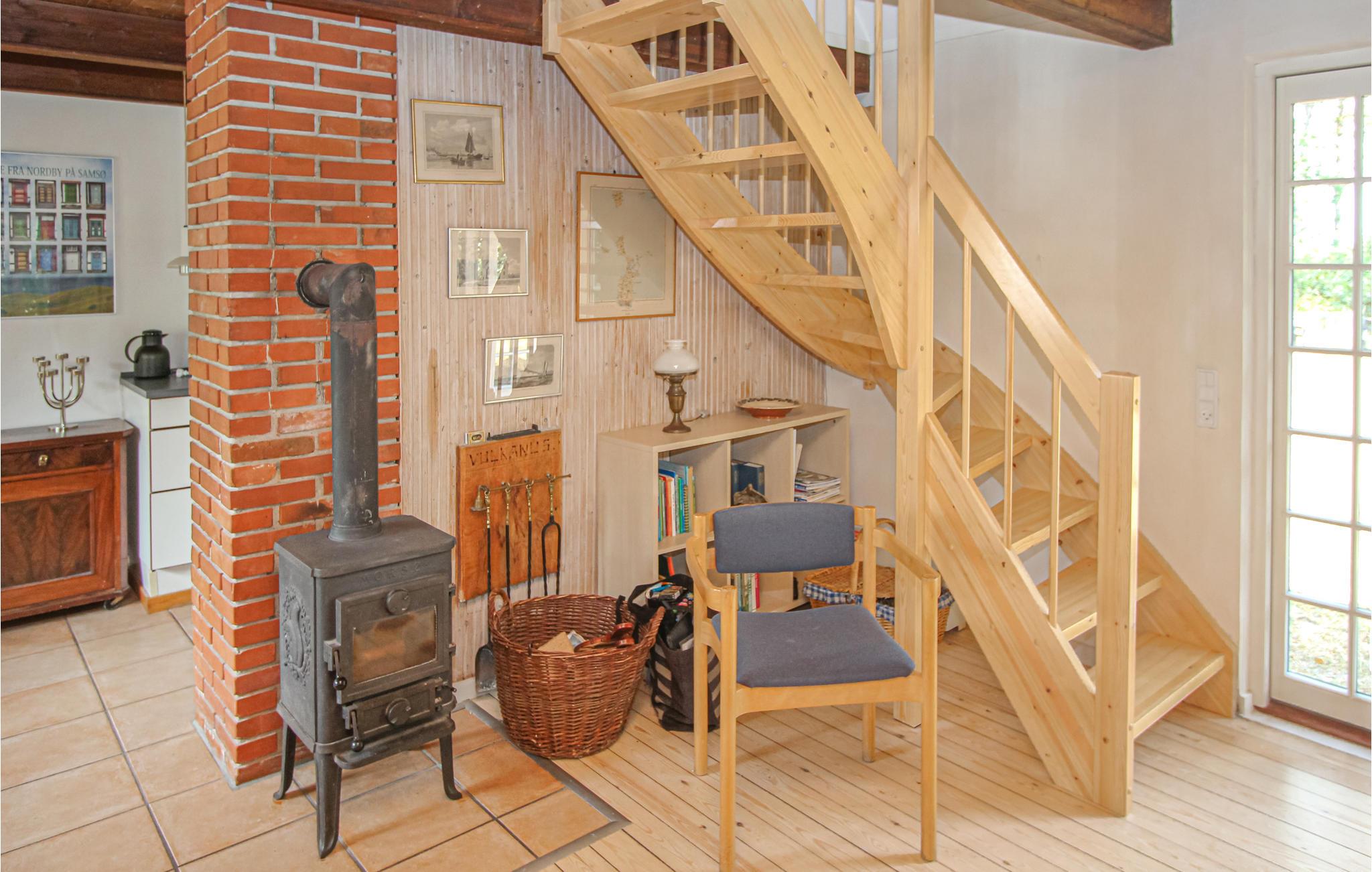 Indvendigt fortryller huset med sine hyggelige møbler, varme trægulve og synlige loftsbjælker. Alt her inviterer jer til at tilbringe kvalitetstid sammen med familie eller venner. Når I har udforsket Samsø i løbet af dagen, kan I sidde sammen i stuen i om aftenen med et godt måltid mad. Slap af ved brændeovnen, og nyd de knitrende flammer.