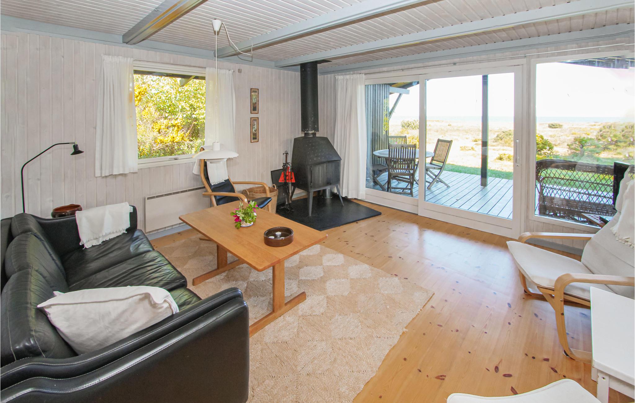 Det rummelige feriehus ligger blot få meter fra stranden og gør et flot indtryk med sit lyse, venlige interiør. Her har er alle betingelser for ideel ferieafslapning opfyldt. Efter en fantastisk dag med badehygge og sol kan I slappe af her, nyde et godt måltid sammen ved det store spisebord, lytte til brændeovnens knitren og udfordre hinanden i et godt brætspil. Et højdepunkt ved dette feriehus er uden tvivl den unikke havudsigt. Tag plads på terrassen og lad jer fortrylle af dette panorama. På ejendommen finder I også andre steder, hvor udsigten også kan nydes til fulde, lad humøret og dagen vælge! Feriehusets beliggenhed lige ved stranden lægger op til daglige, forfriskende badeudflugter og lange gåture. Her kan I tilbringe en uforglemmelig ferie på ethvert tidspunkt af året.