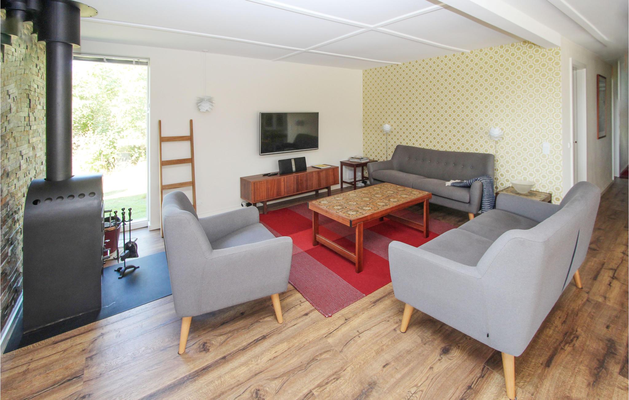 Feriehuset er moderne og hyggeligt indrettet og byder jer hjerteligt velkommen. Der er flere hyggelige hjørner, hvor I kan slappe dejligt af enten alene eller sammen. Vinduer fra gulv til loft sørger for masser af lys i værelserne og giver jer mulighed for at nyde den fantastiske udsigt over landskabet fuldt ud. I det stilfulde køkken er det sjovt at lave mad sammen, og om aftenen kan I slappe af i saunaen og slutte dagen af med en drink på terrassen.