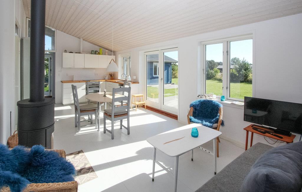 Velkommen til dette indbydende sommerhus med lyse værelser og lyse møbler, som er yderst indbydende og hjemligt indrettet. Tilbring hyggelige aftener sammen ved den knitrende ild i bærndeovnen, og saml hele familien omkring det store spisebord med udsigt over haven. Sæt jer til rette på terrassen og nyd solen, mens I ser jeres børn lege. Efter en kort gåtur kommer I til stranden.