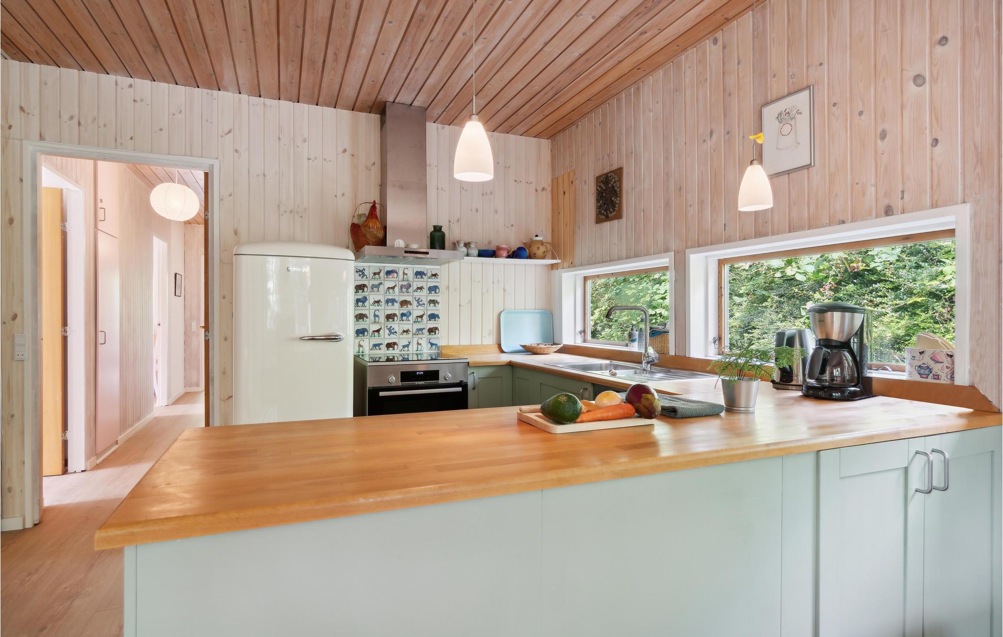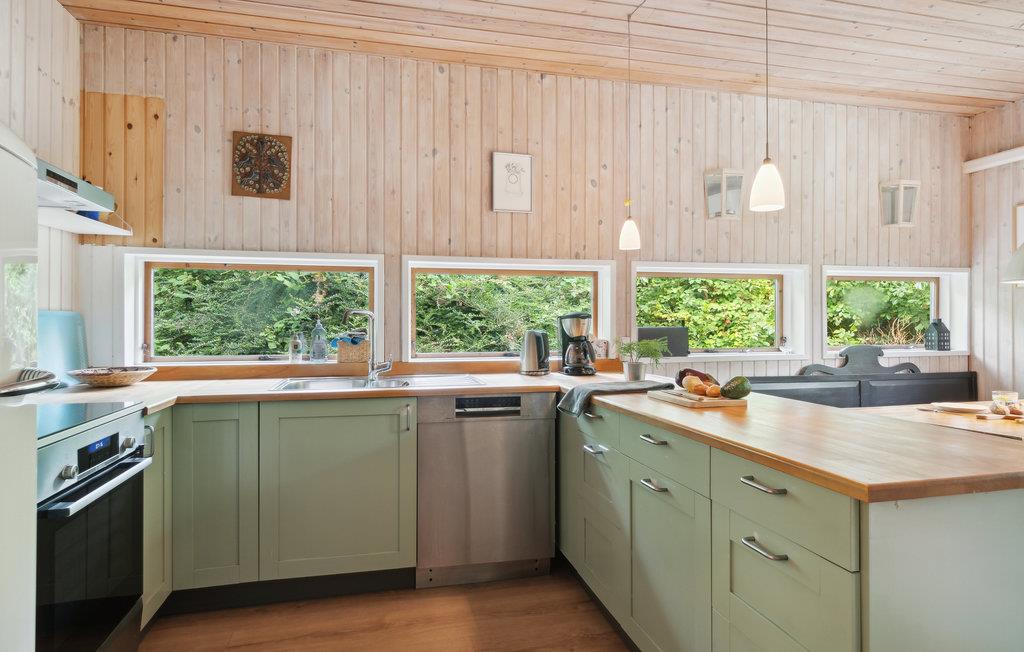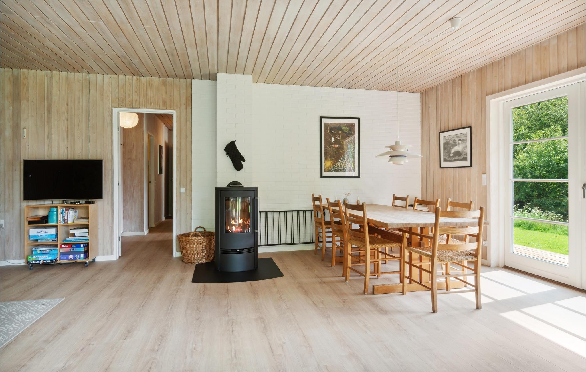 De lyse og hyggelige værelser giver jer de ideelle rammer for en skøn ferie sammen med jeres yndlingspersoner, hvor både afslapning og aktiviteter står på programmet. Om aftenen kan I sammen finde jer godt til rette i den store stuesofa og lægge planer for de kommende dage, mens brændeovnen knitrer i baggrunden. Alle soveværelser har direkte adgang til haven. Ude på den store naturgrund finder børnene masser af plads til at lege og boltre sig i det fri. Nyd solen og den afslappede feriestemning på en solrig plet, mens I lytter til børnenes stemmer og fuglesangen fra trætoppene.