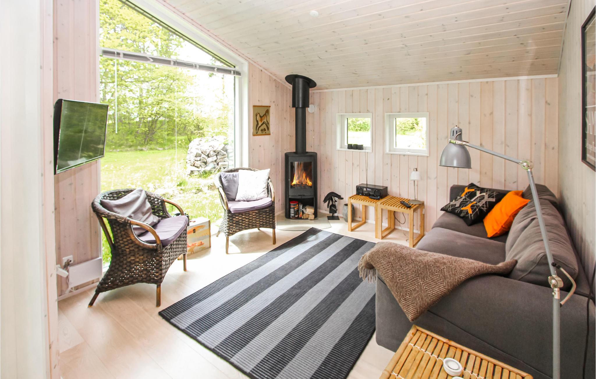 Huset byder jer velkommen på en rummelig grund, der er masser af plads til at slappe af og lege! Takket være de store vinduer i opholdsstuen har I altid børnene i sigte og kan nyde det smukke lys i værelserne. Sæt jer godt til rette i sofaen og lad blikket vandre ud i det grønne. Om aftenen spreder brændeovnen en hyggelig varme.