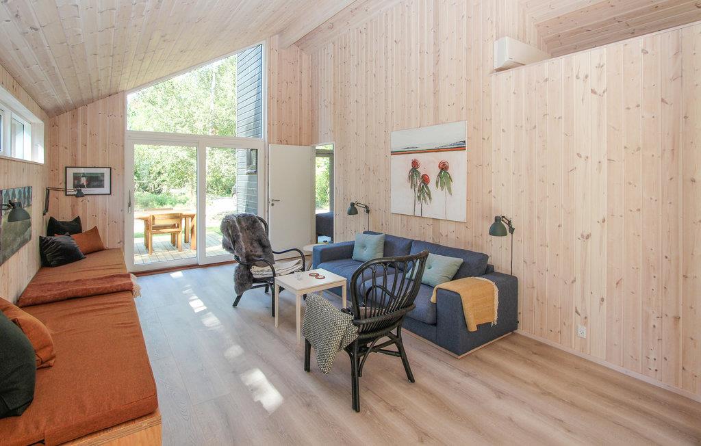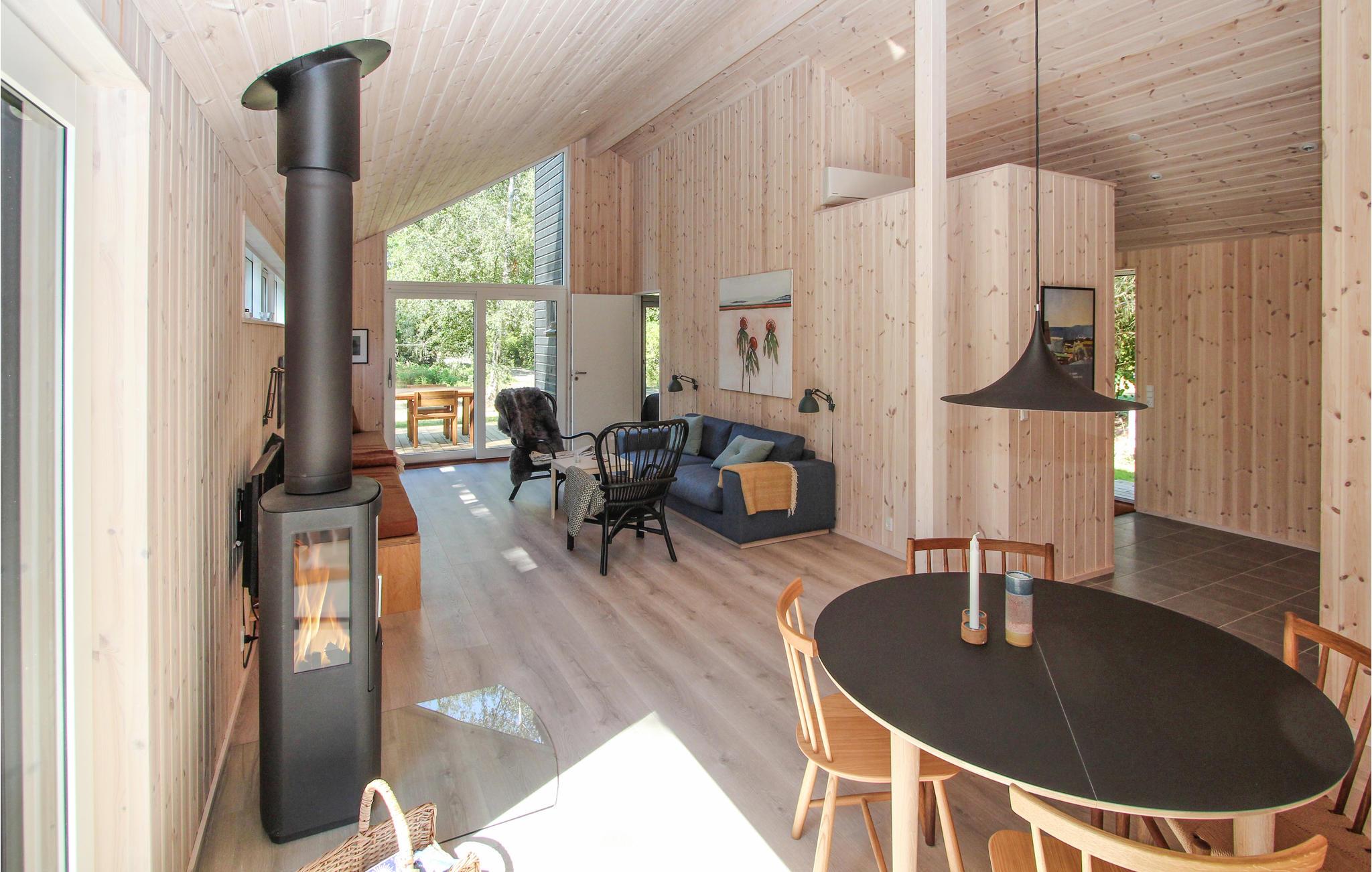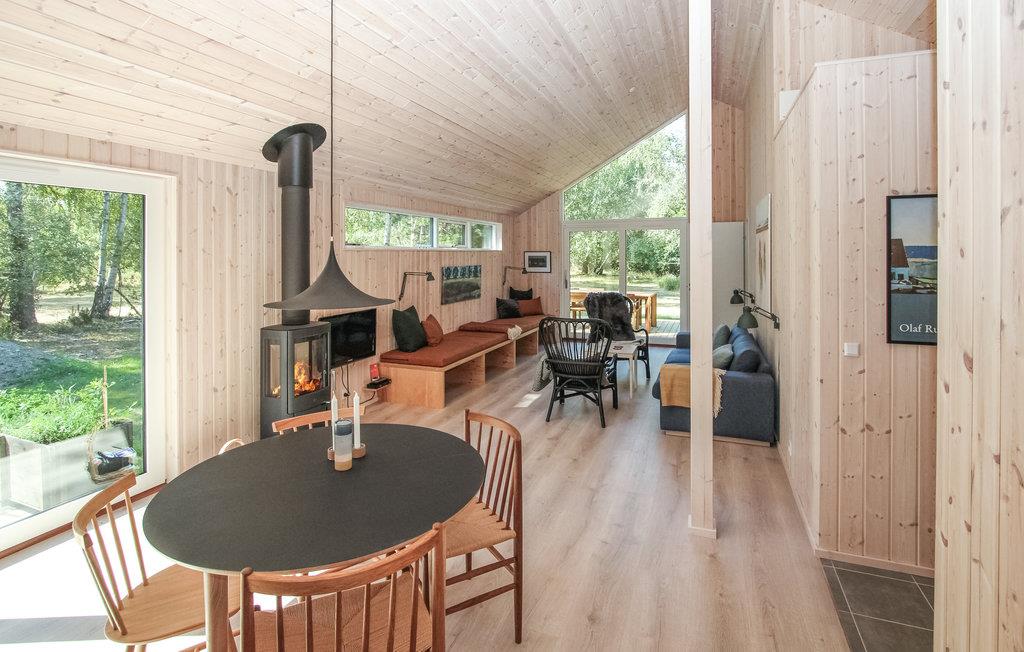 Moderne og stilfuldt sommerhus nær stranden på naturskønne Samsø, med lysindfald og hyggelig brændeovn.