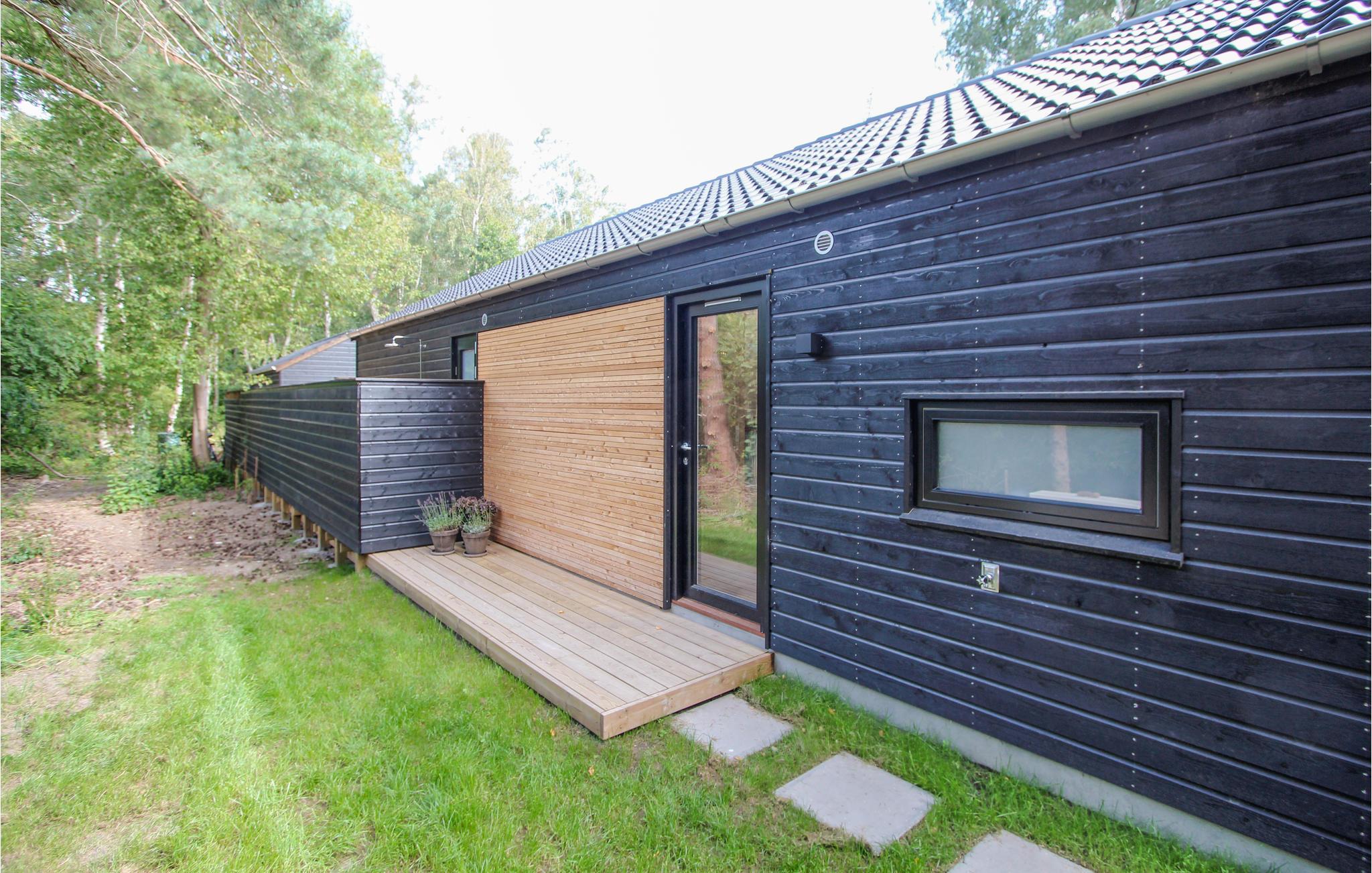Slap af i dette moderne og smagfuldt indrettede hus og læg jeres hektiske hverdag bag jer. De smart placerede vinduer lukker masser af lys ind i værelserne og giver jer en fantastisk udsigt over det omkringliggende grønne område. Sæt jer godt til rette sammen i opholdsstuen, tænd op i brændeovnen og snak til sent på aftenen, mens flammerne knitrer hyggeligt. Her kan I også spise udenfor, nyde et solbad eller tage den koret gåtur til stranden.