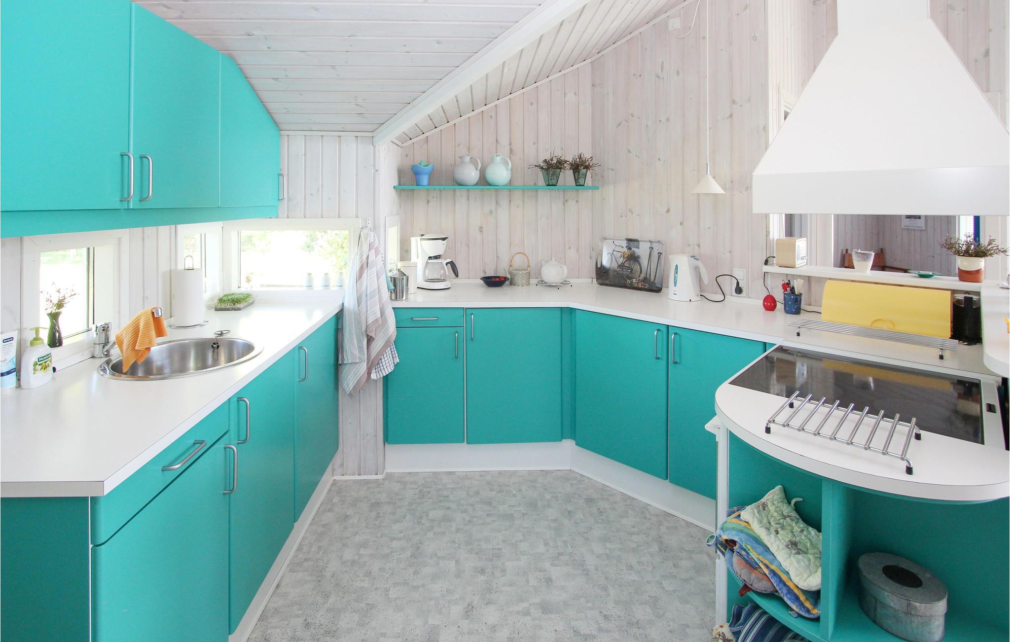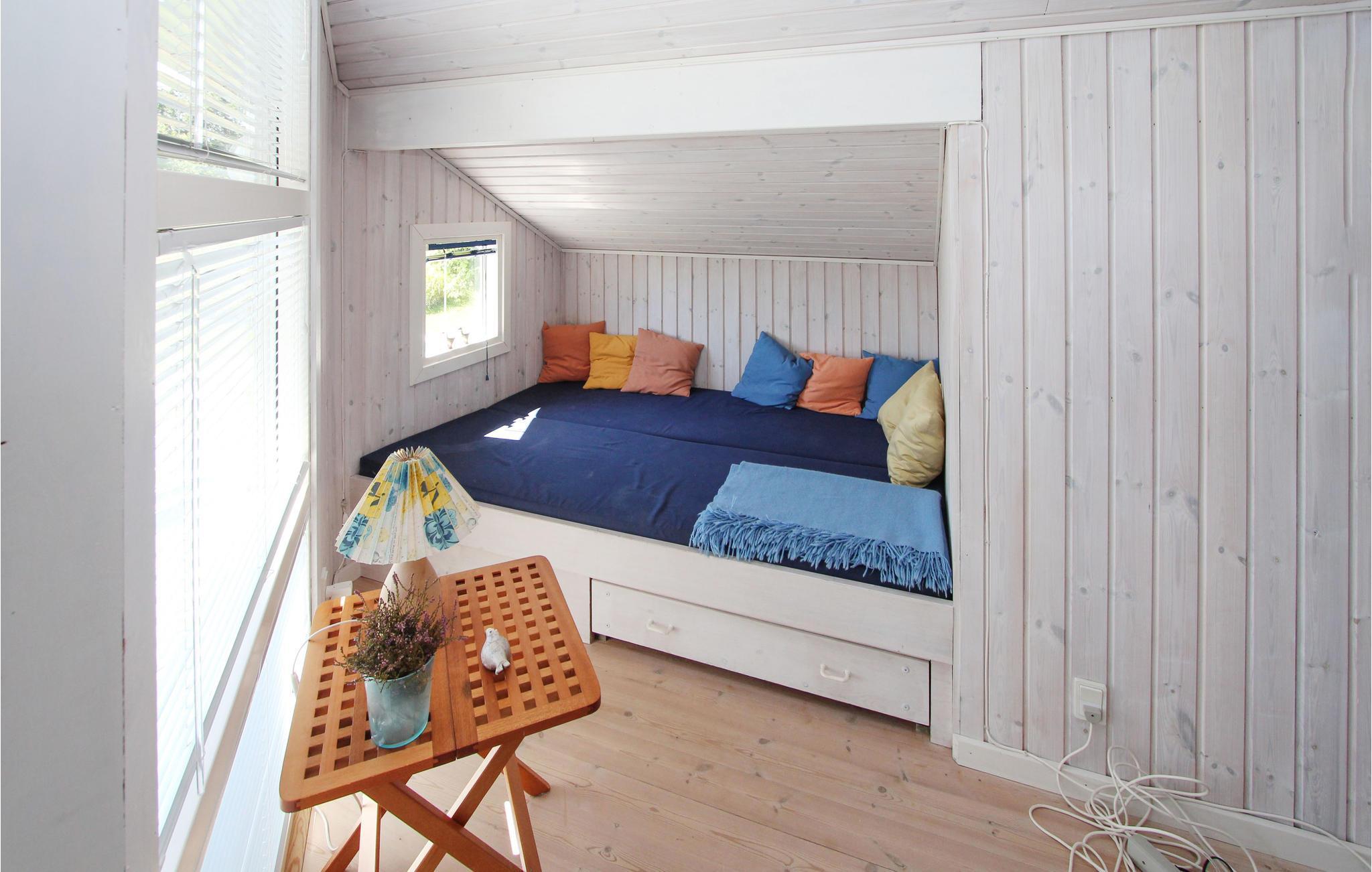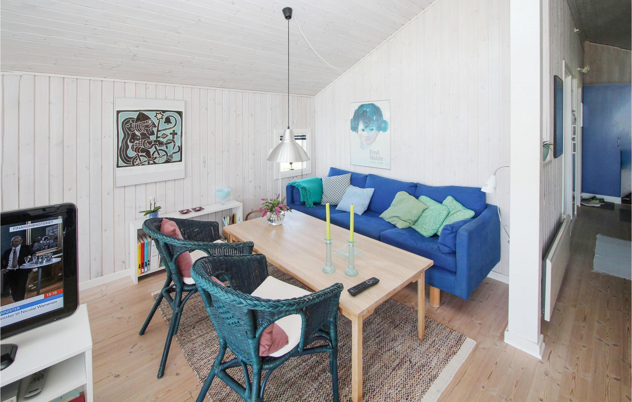 Et lyst og indbydende sommerhus venter jer her. Så snart I træder ind, vil I bemærke den interessante farvesammensætning, som giver feriehuset sin personlige charme og skaber en munter og stilfuld atmosfære, hvor I kan slappe af. Sæt jer godt til rette i stuen, især i den lille alkove med eget vindue, en lille ø af fred i det travle liv i fællesområderne.