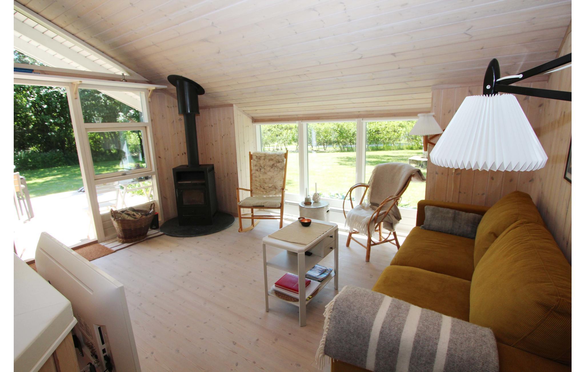 Huset byder velkommen på en velholdt ejendom. Med sine lyse, træbeklædte vægge, store vinduespartier og de enkle, moderne møbler har det en klassisk sommerhuscharme, som gør det nemt for jer at slappe af her og glemme hverdagens bekymringer. Træd ud på terrassen, tag en dyb indånding og sæt jer godt til rette i havemøblerne til et langt solbad. Spis sammen om aftenen ved det store spisebord med udsigt til haven, inden I sætter jer til rette i sofaen og lytter til ildens hyggelige knitren i brændeovnen.