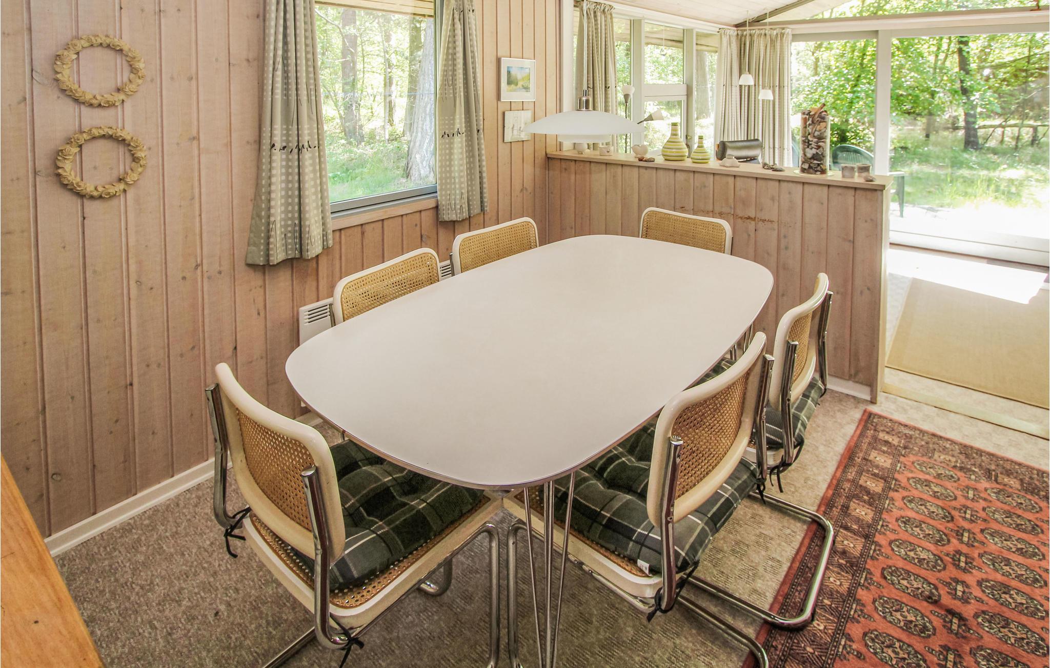 Hele familien vil finde plads under det maleriske græstag på huset, som ligger midt i skoven og tæt på havet. Efter en aktiv dag i naturen kan I slappe af i husets sauna og samle familien til hyggelige aftener ved brændeovnen. Nyd den smukke udsigt til den grønne skov gennem de mange vinduer, som gør det nemt at sætte farten ned her.