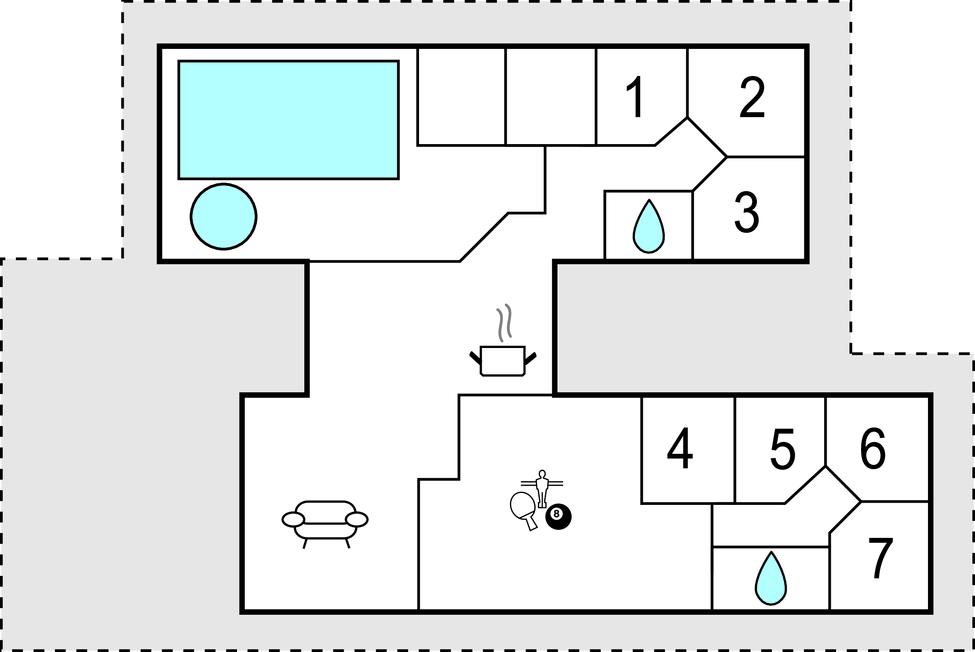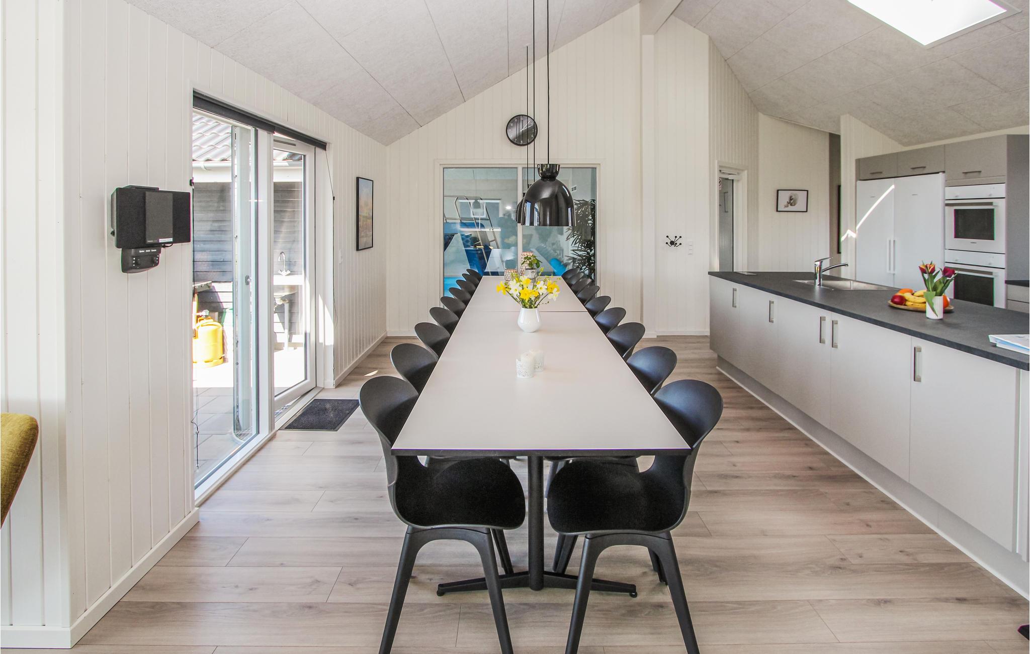 Det rummelige hus er lyst og indbydende, og på trods af sin store størrelse udstråler det en hjemlig hygge, der vil glæde jer fra første øjeblik. I køkkenet er der plads nok til mange hjælpende hænder, når der skal laves mad, og det lange spisebord indbyder til at nyde måltiderne sammen. Børnene vil elske poolområdet, hvor de kan rutsje og plaske rundt, mens saunaen og spabadet lover afslapning for de voksne. Efter en travl dag lokker den komfortable sofa, tænd op i brændeovnen og lyt til flammernes knitren, mens I sidder behageligt sammen og taler om dagens oplevelser.