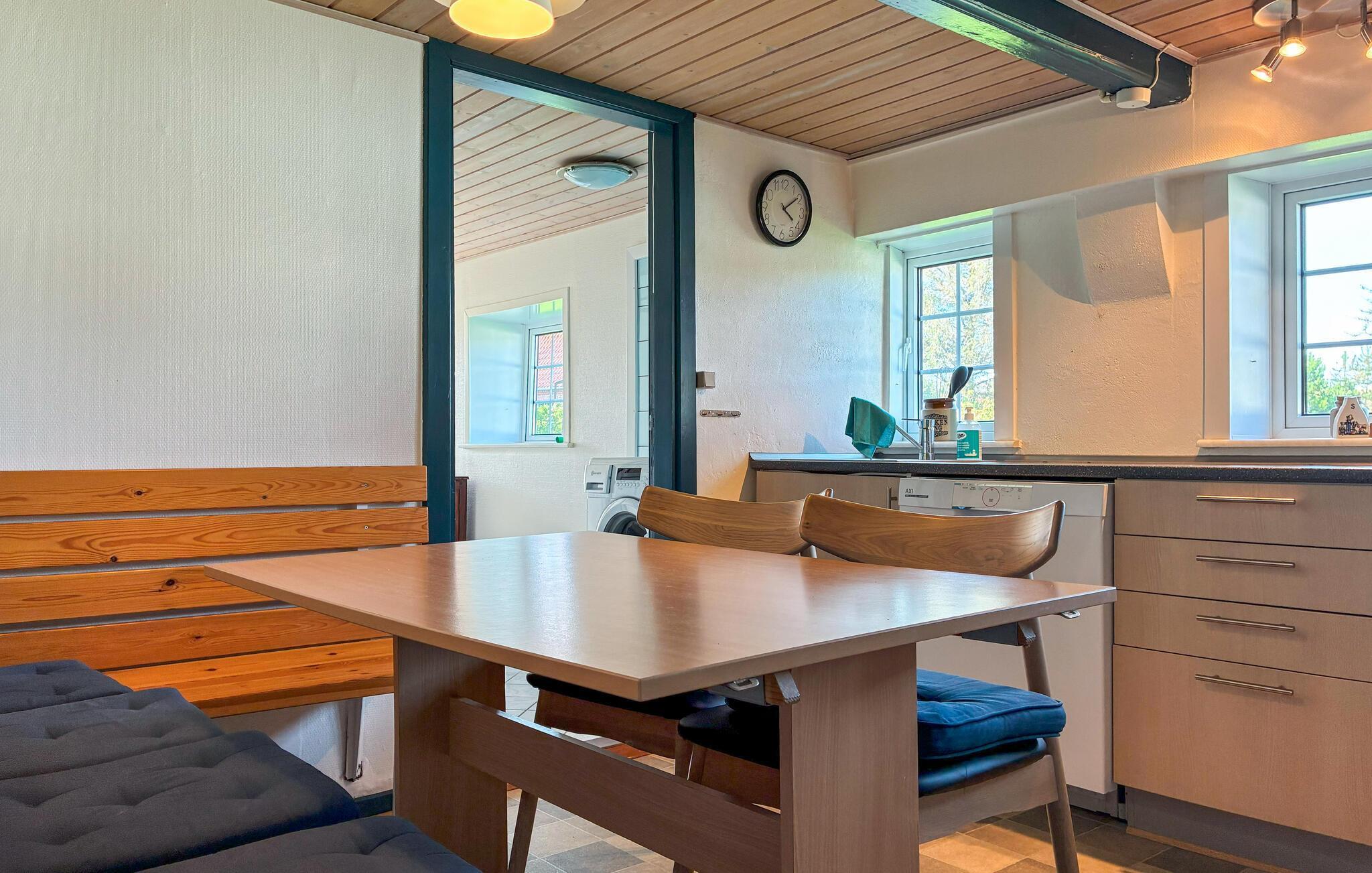 Dette hus kombinerer moderne bekvemmeligheder med charmen fra en svunden tid og skaber et hyggeligt fristed. Læn jer tilbage i sofaen med en kop kaffe, mens ilden knitrer i brændeovnen eller find sammen med familien ved spisebordet i det lyse køkken. Her kan I holde et roligt tempo dagen igennem og give jer god tid til madlavning og andre hyggelige sysler.