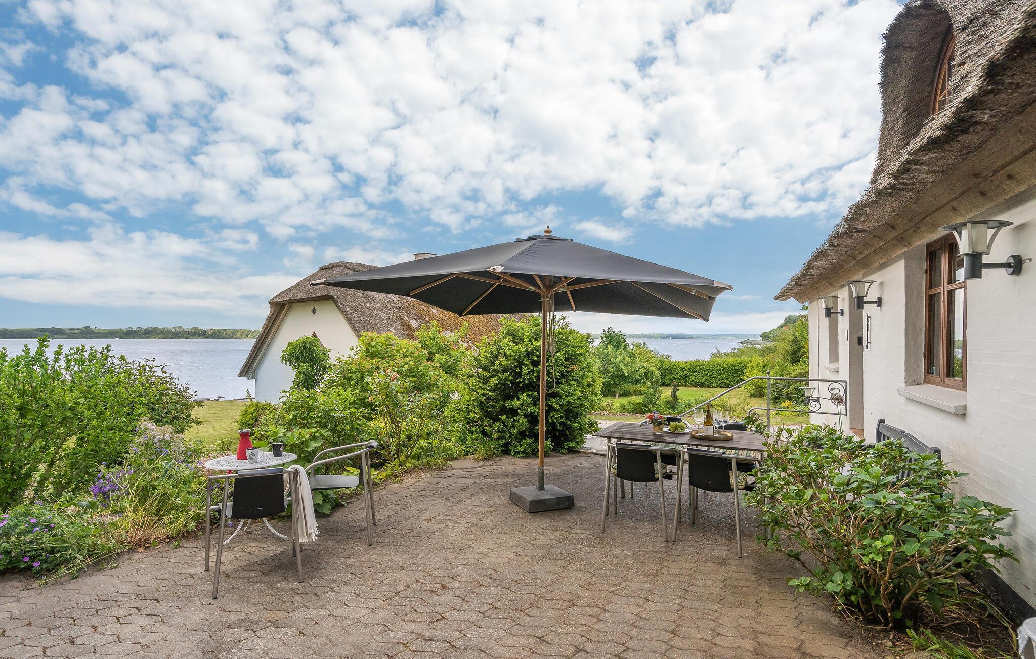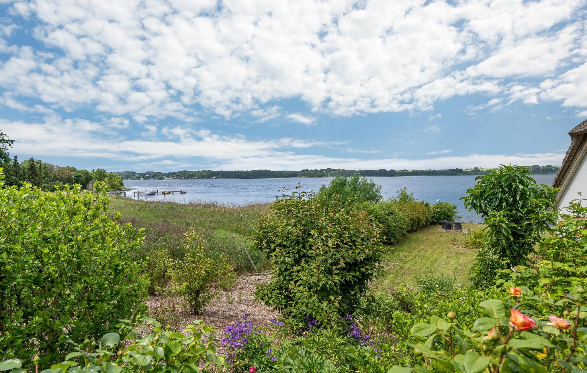 Huset har have direkte ned til Mariager Fjord med et tilhørende lille stykke sandstrand, hvorfra man kan tage en dukkert eller fiske.