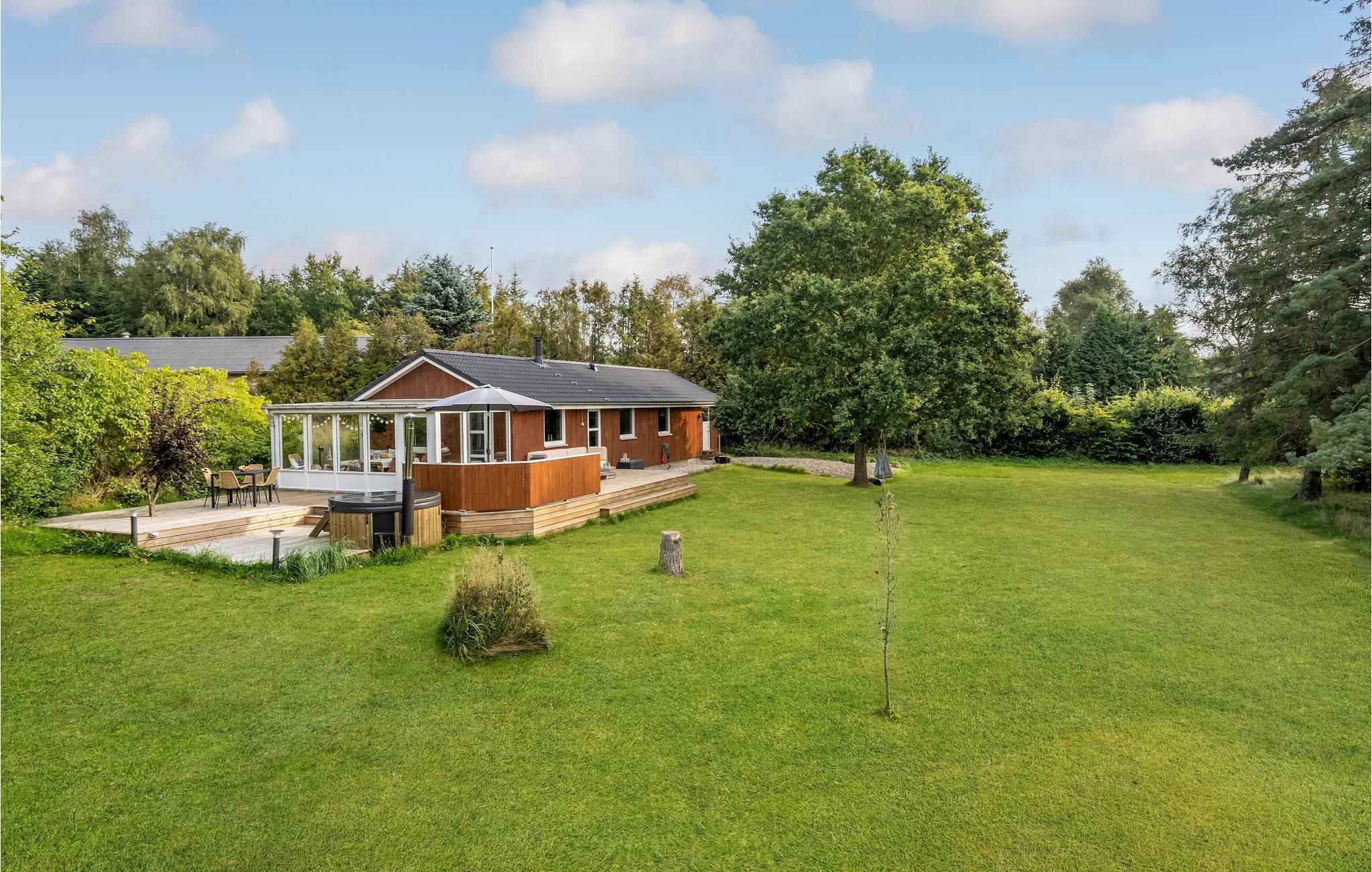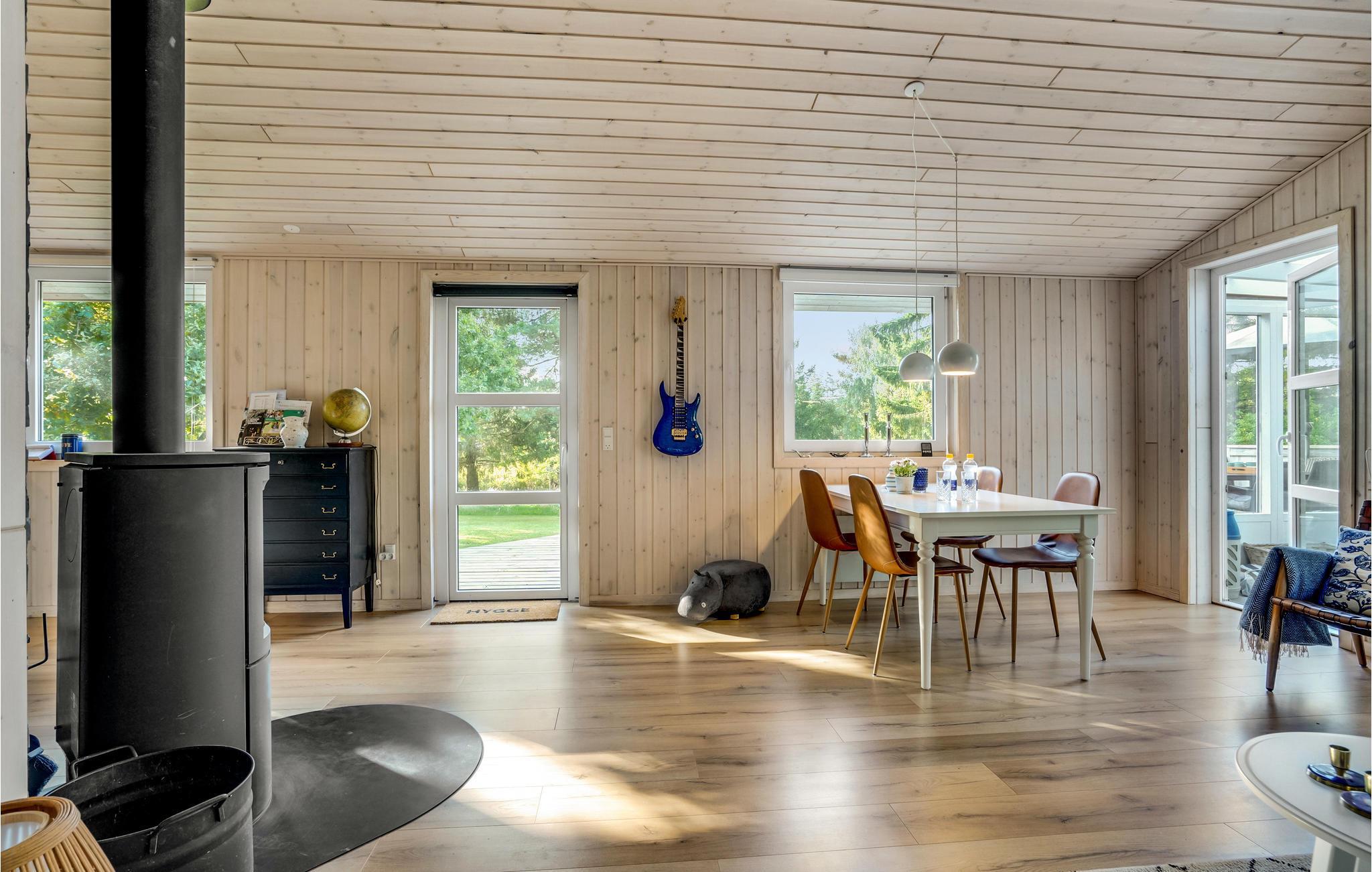 Tæt på Mariager Fjord finder I dette smukke feriehus. Huset ligger på en stor, beskyttet naturgrund med grønne områder og gamle træer og indbyder til afslappende timer med familien. Indenfor venter der fuldt udstyrede værelser, som giver et lyst og hyggeligt indtryk. Nyd måltiderne ved den lyse spiseplads eller i udestuen med udsigt over det grønne område.