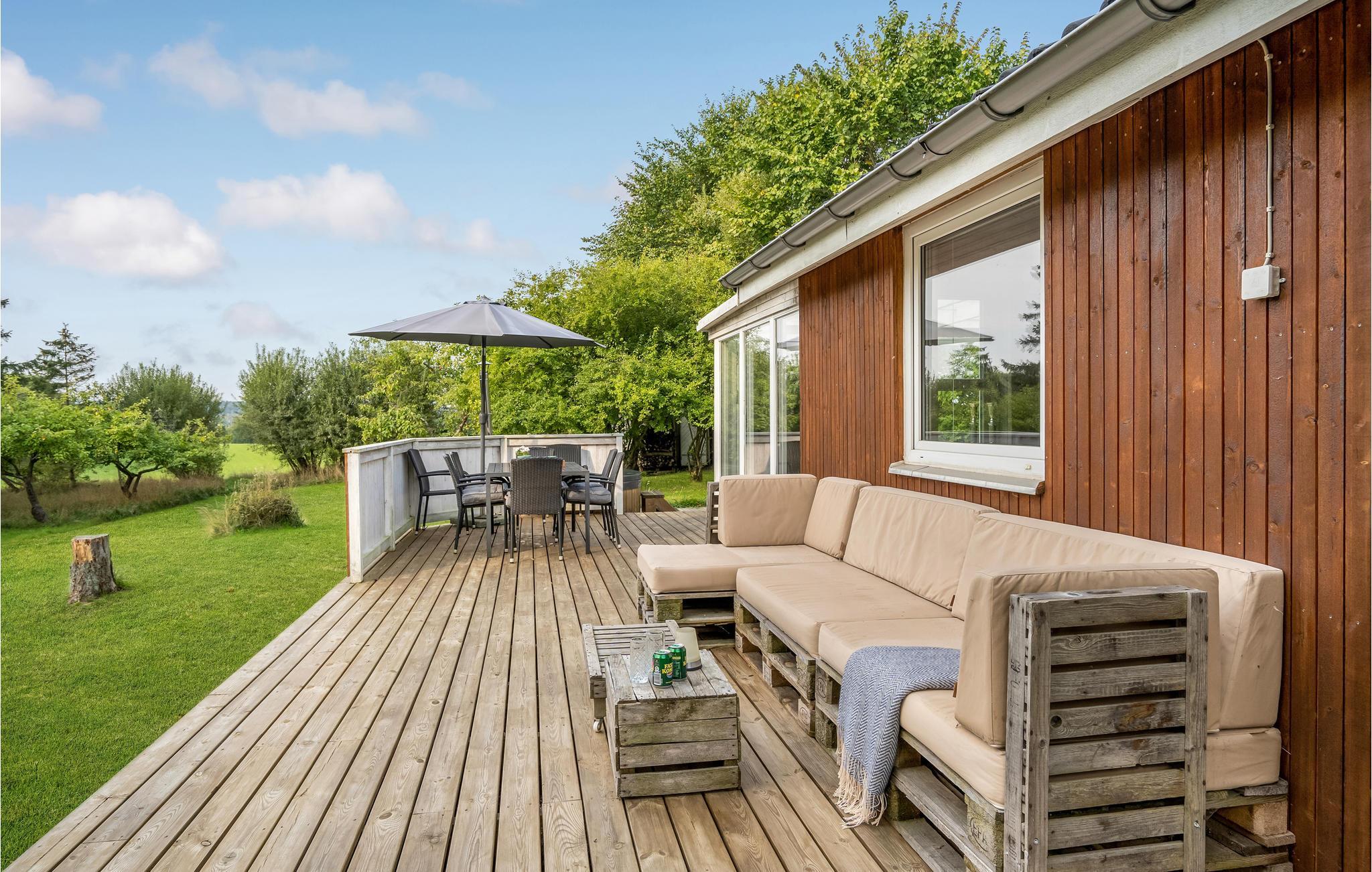 Charmerende feriehus ved Mariager Fjord med stor træterrasse og vildmarksbad, perfekt til afslapning i naturskønne omgivelser.