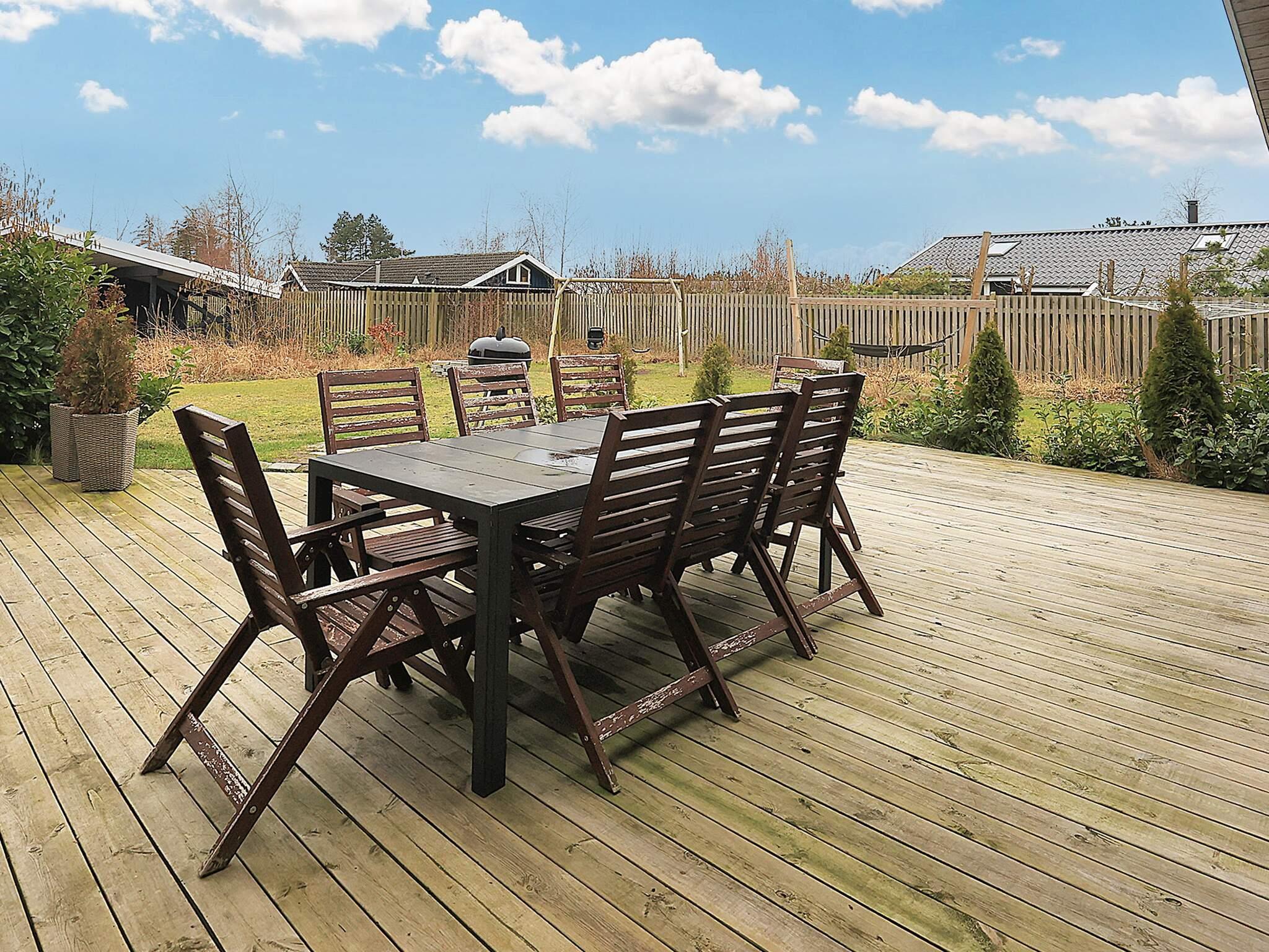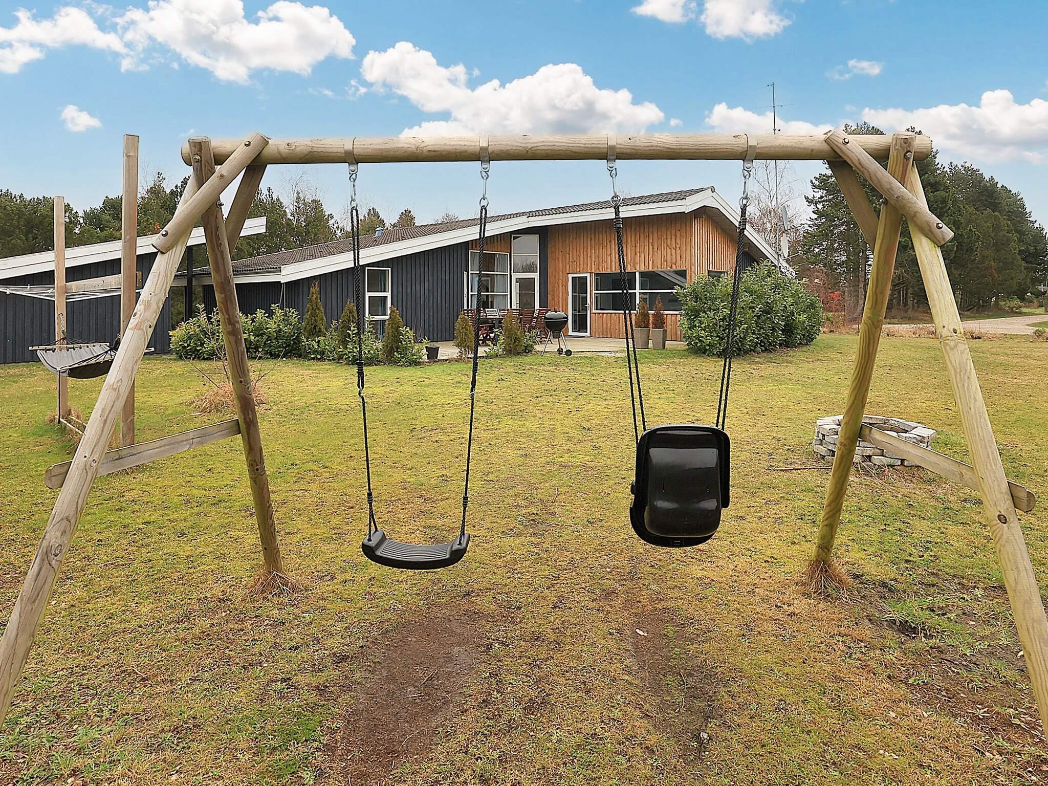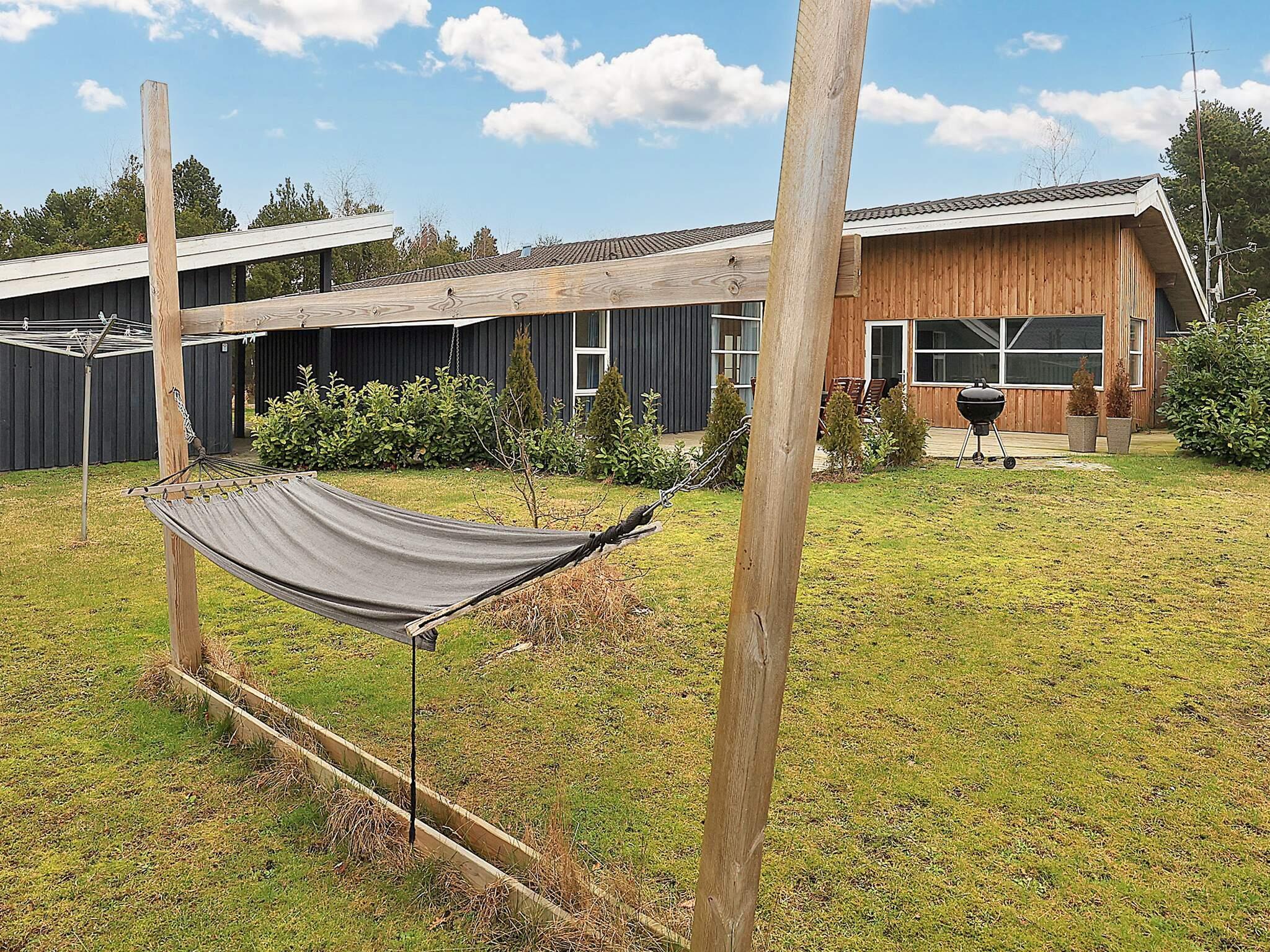 På grunden er der god plads til boldspil og leg, samt gynge og sandkasse til de mindste. Der er 60 m² åbent terrasseareal med god plads til sol, hygge og gode grillaftner. Der er lys med spot til om aftenen. Udlejes ikke til ungdomsgrupper.