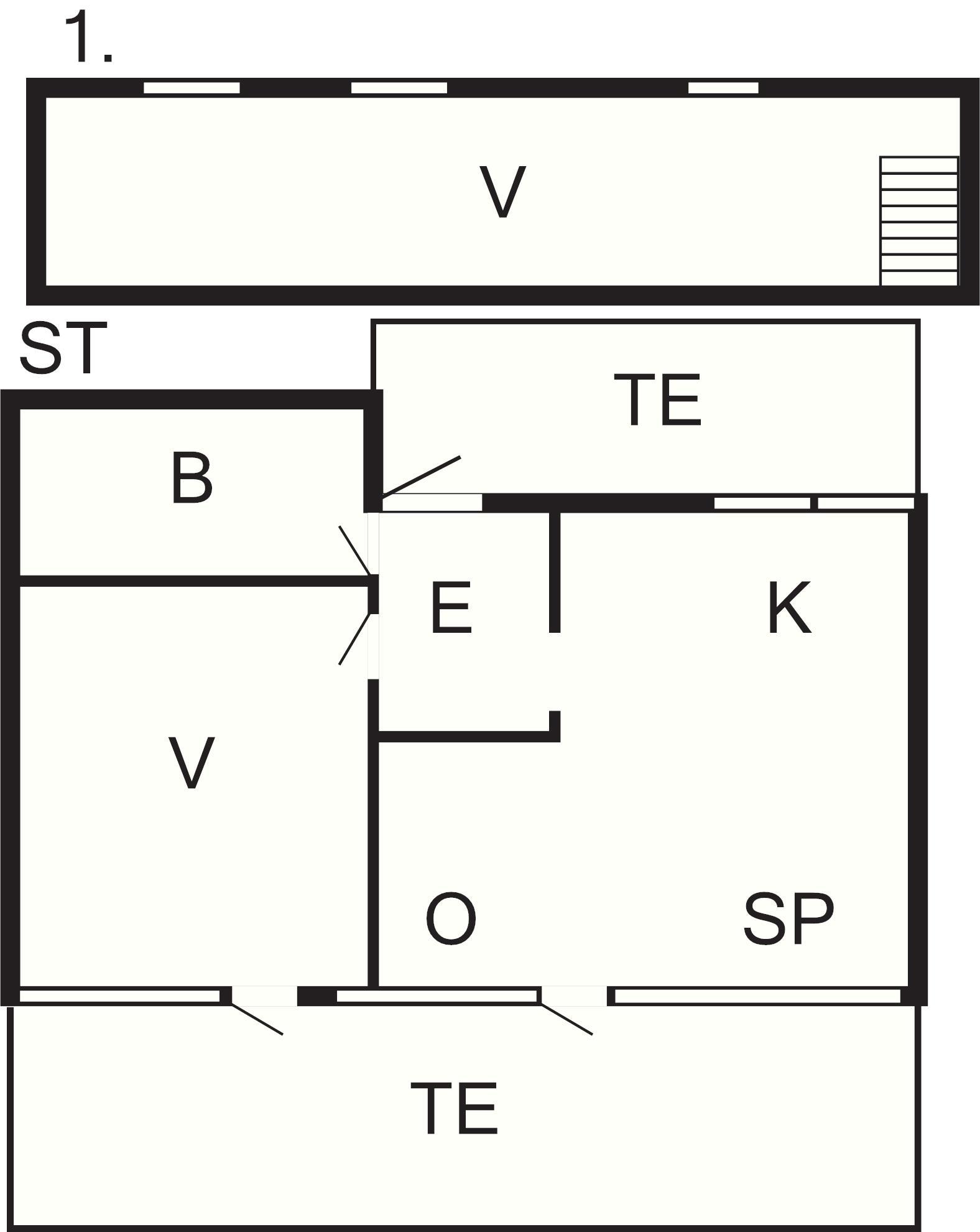 2 Soveværelser: (1DS)+(1DS+1S), barneseng