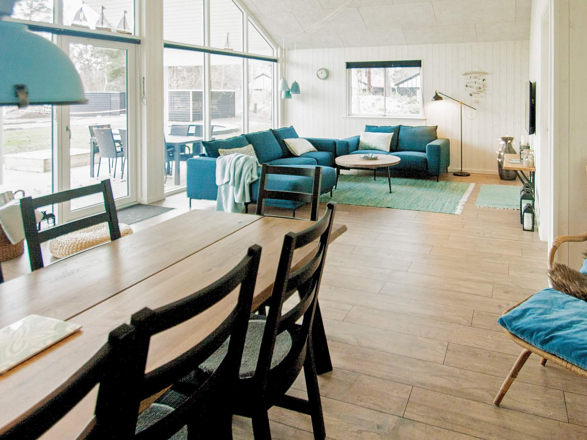 Husets midte, køkken/alrummet, er både rummeligt og veludstyret med bl.a. dobbelt ovn, opvaskemaskine og køleskab. Udover den rigelige plads til de flittige kokke er der også god plads ved det lange spisebord foran brændeovnen, hvor der kan dækkes flot op til feriemad eller festlige begivenheder.
