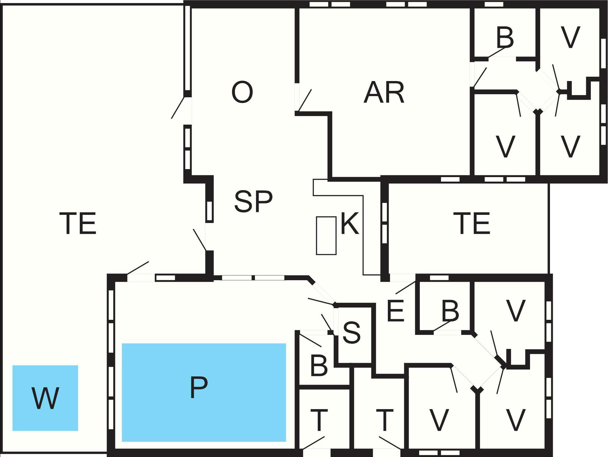 6 Soveværelser: (1DS)+(1DS)+(2S)+(2S)+(2S)+(2S)