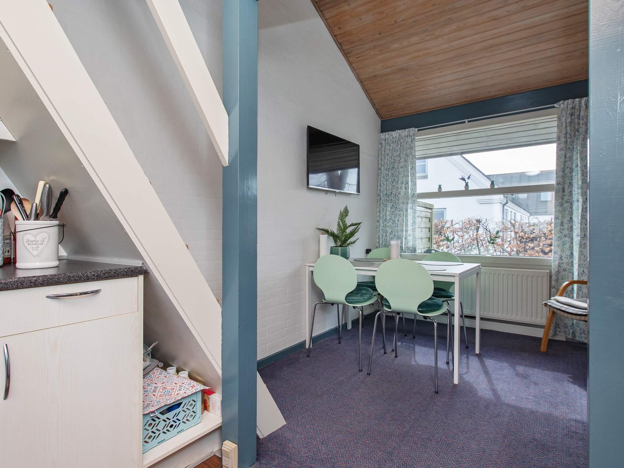 Ferielejlighed beliggende centralt på Marielyst i et ugenert kompleks med lejligheder og rækkehuse.