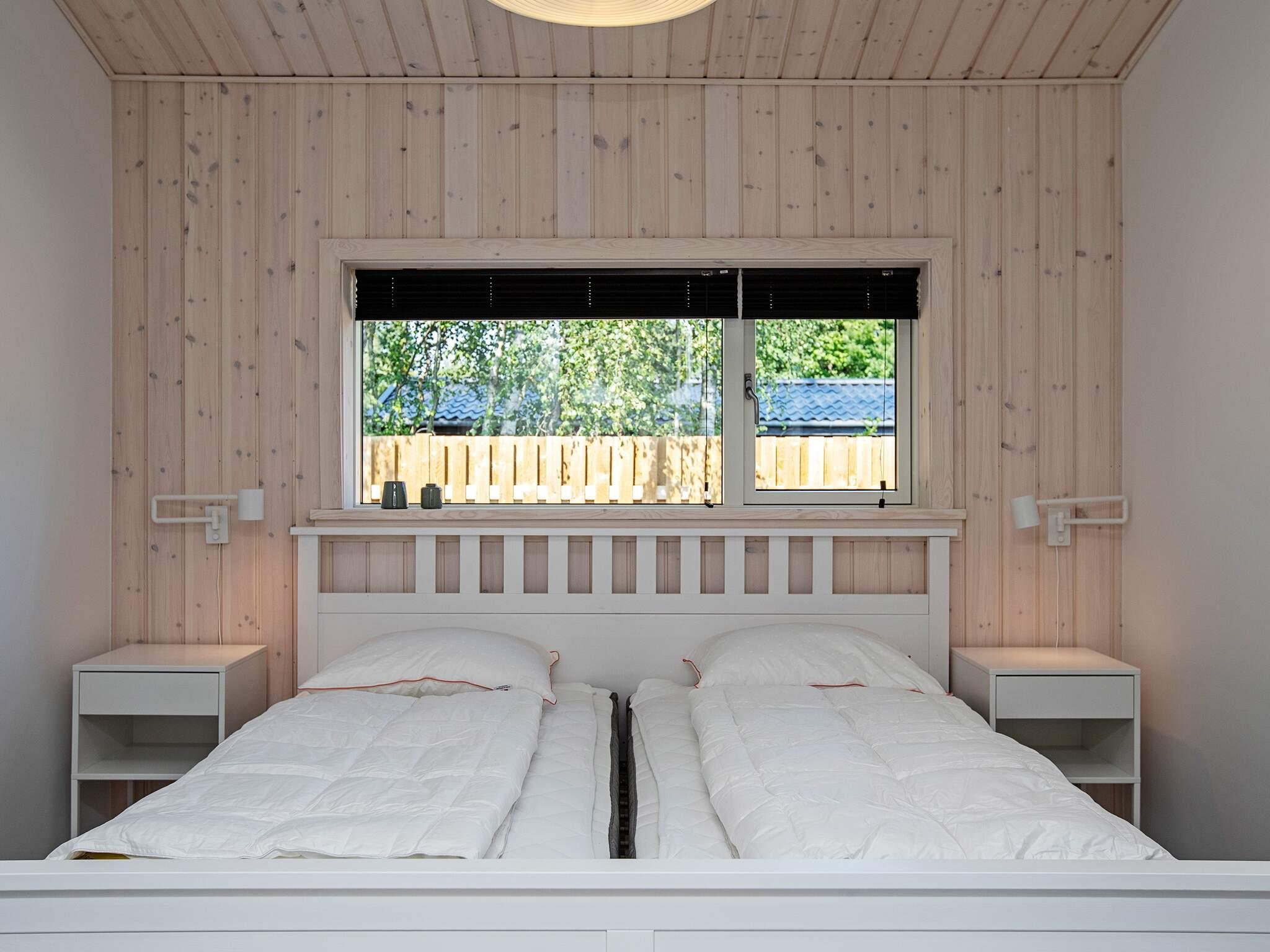 Soveværelserne er fordelt på to værelser med dobbeltsenge og et værelse med to køjesenge til fire personer.