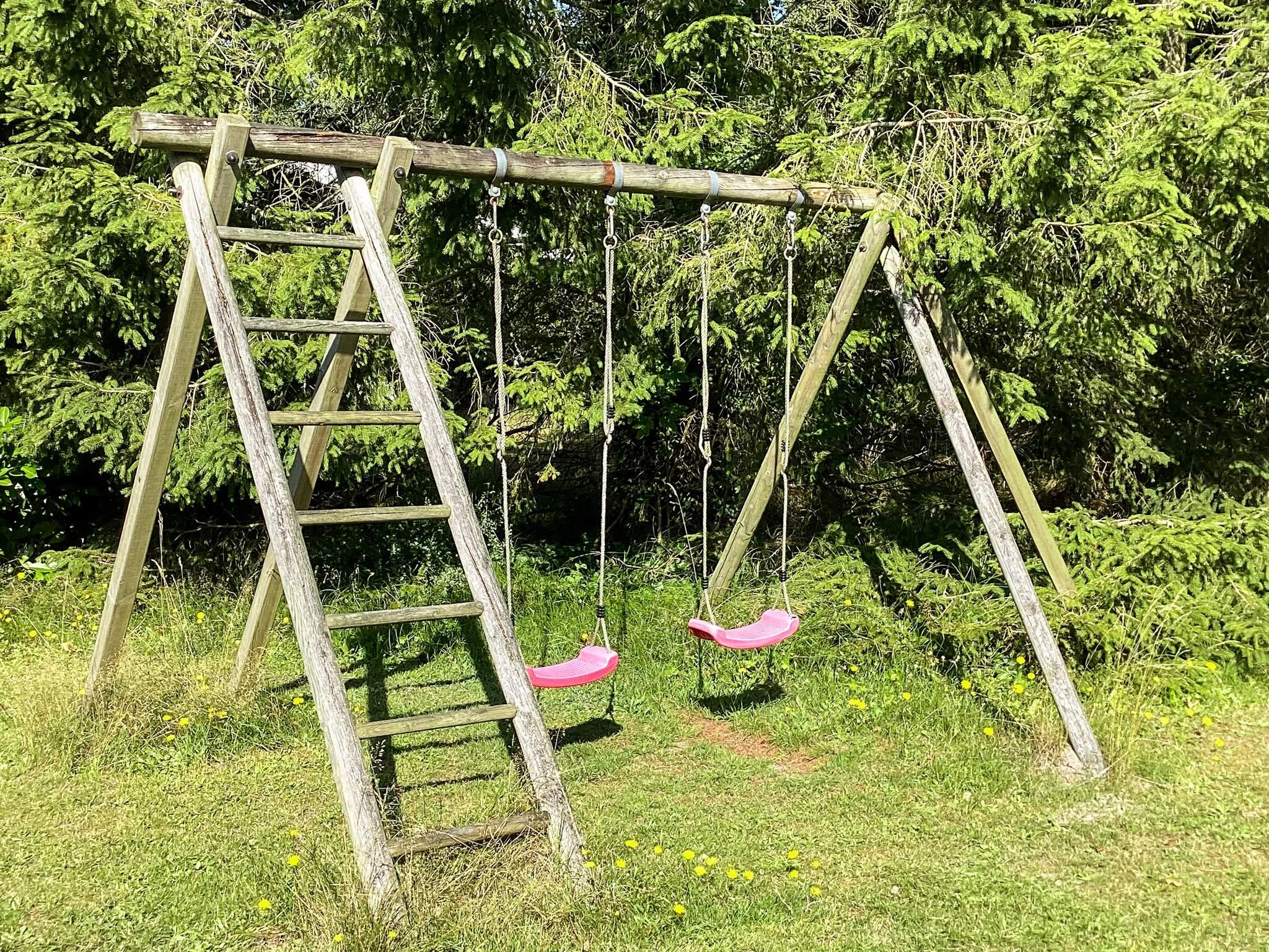 Udendørsområdet tilbyder en ugeneret have på knapt 1400 m2 med flere muligheder for udendørsaktiviteter. Der er bl.a. volleyball/badmintonnet, dart, fodboldmål, sandkasse og gyngestativ. Derudover er der to terrasser. Den mod sydøst fanger morgensolen, hvor morgenmaden kan indtages. Terrassen mod sydvest er overdækket og har en stenovnspejs/grill, hvor solen står på næsten hele dagen. Udlejes ikke til ungdomsgrupper.