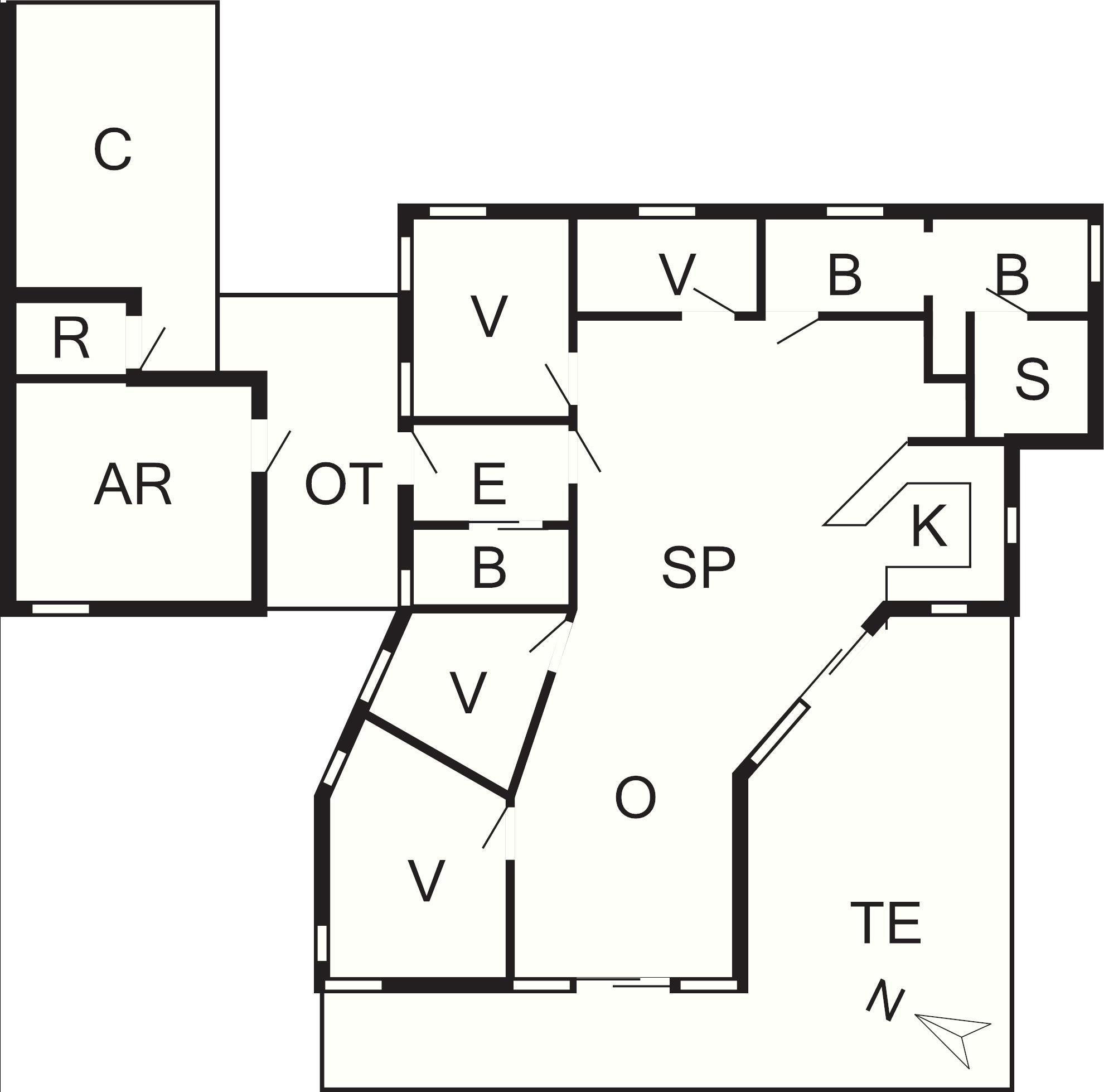 Husets midtpunkt er køkken/alrum i åbent plan med spise- og opholdsområde til familielivet. Huset har desuden fire soveværelser med i alt 10 senge at vælge imellem. Feriehuset er isoleret til helårsbrug og udstyret med behagelig gulvvarme. Der er både en hyggelig brændeovn og en klimavenlig varmepumpe. Udover toilet og bruser byder det store badeværelse på både spabad og sauna til wellness og afslapning. Der er et aktivitetsrum i annekset med billard, bordtennis og dart til fritidssjov. Rummet er let tilgængeligt via den overdækkede terrasse.