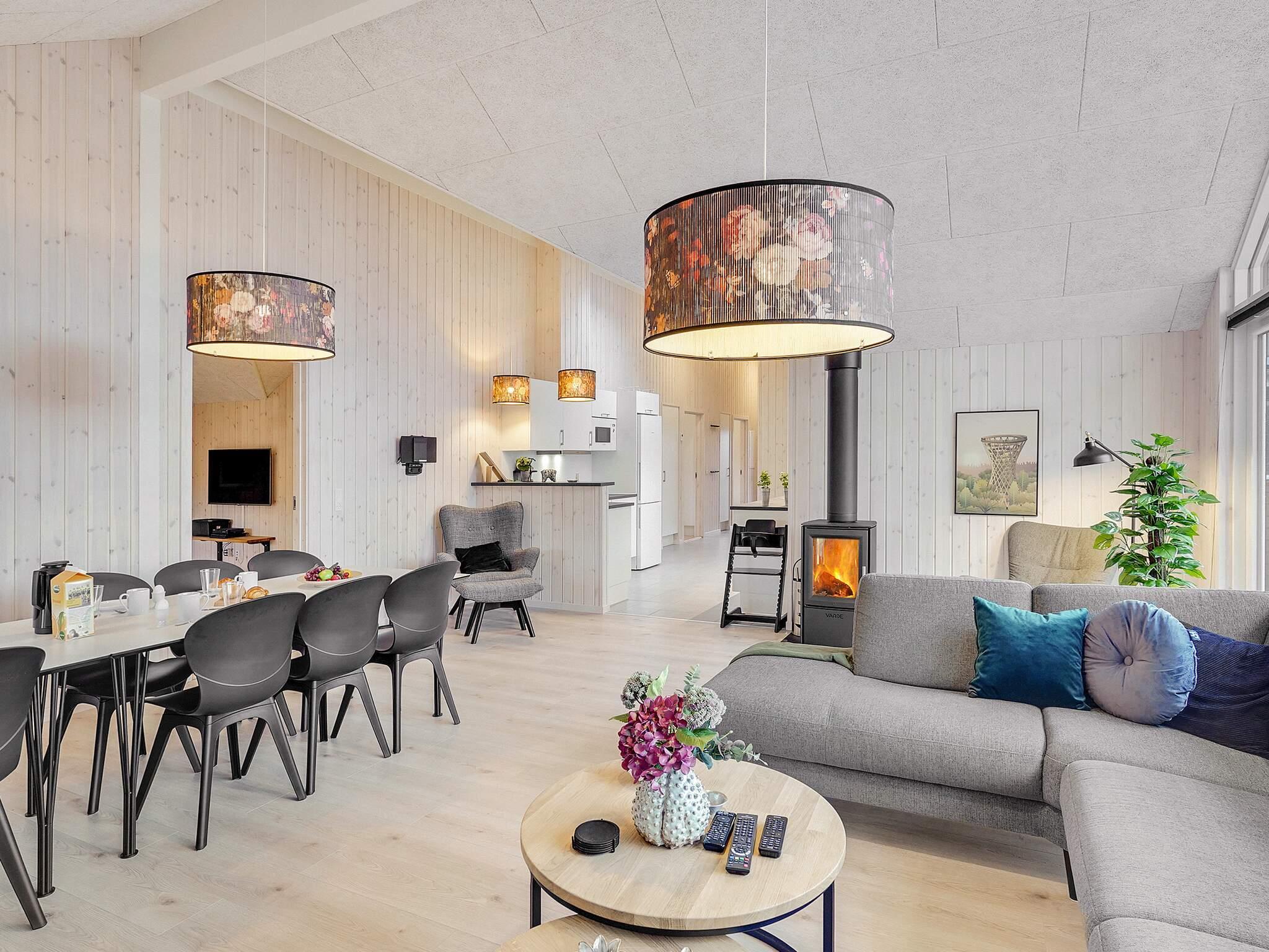 Feriemåltider tilberedes i sommerhusets lækre køkken. Det åbne køkken/alrum giver god plads til, at flere kan hjælpe med madlavningen. I tilknytning til køkken/alrum ligger sommerhusets stue. Her kan du nyde både sommer- og vinteraftener med en god film på TV. På kolde vinteraftener giver brændeovnen optimale hyggeforhold. I stuen kan man også samles om et PlayStation-spil eller et godt gammeldags brætspil.