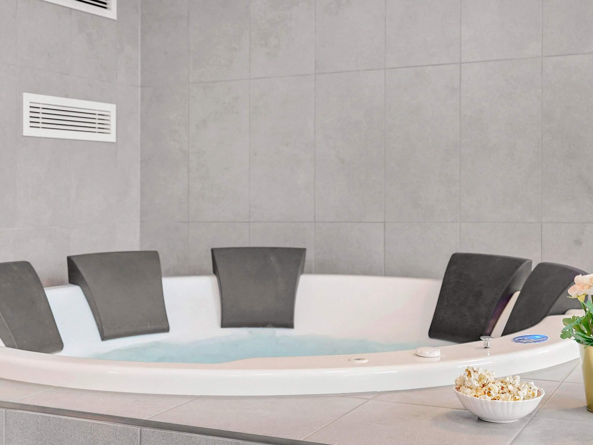 Sommerhusets pool er på hele 14 m2 og har både modstrømsanlæg og romerske trappetrin, der giver børn og ældre familiemedlemmer nem adgang til vandet. Som en ekstra bonus har poolen også en vandrutsjebane. Poolrummet gør dette feriehus til det oplagte valg til en sjov familieferie året rundt. Trænger de voksne til en afslappende stund under turen, er spabadet og saunaen det oplagte sted at holde en pause.