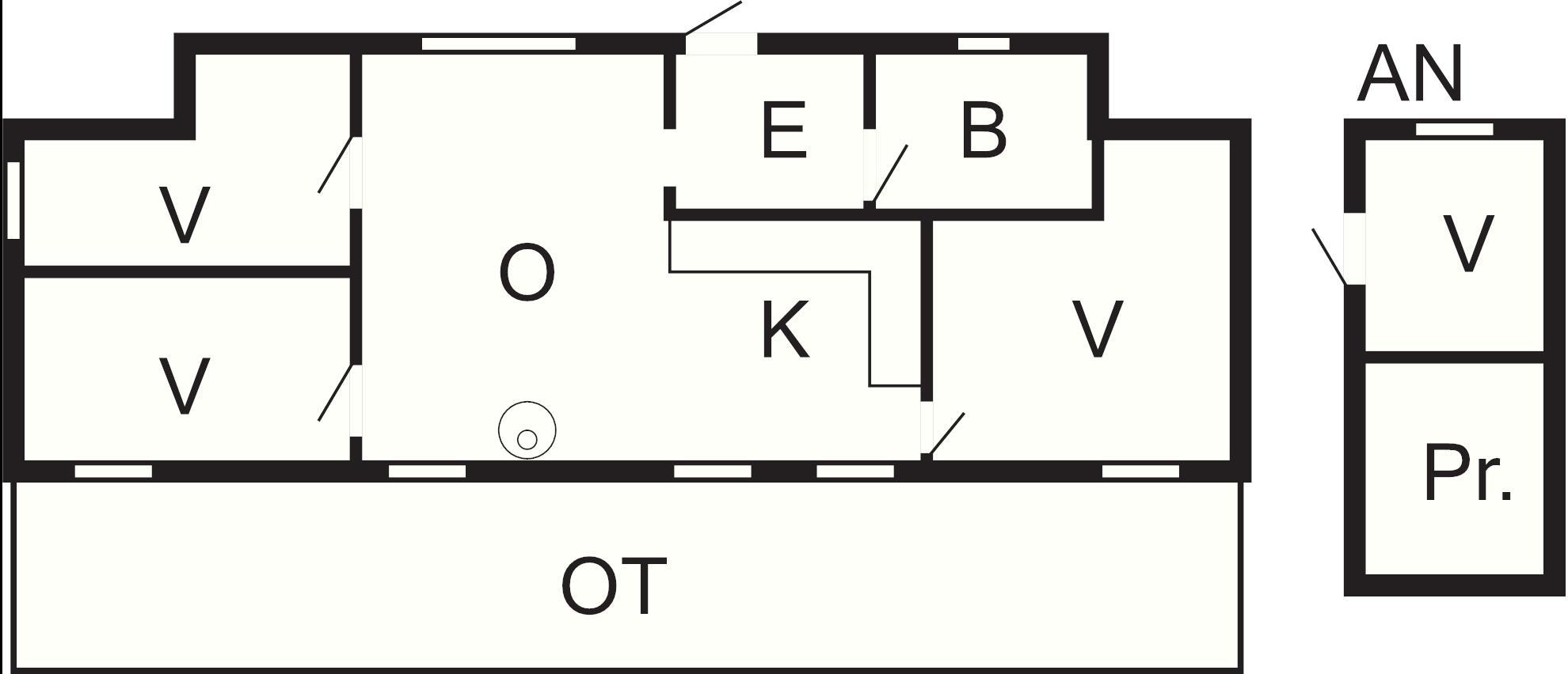 1 Opholdsstue: Brændeovn, tv, høj stol