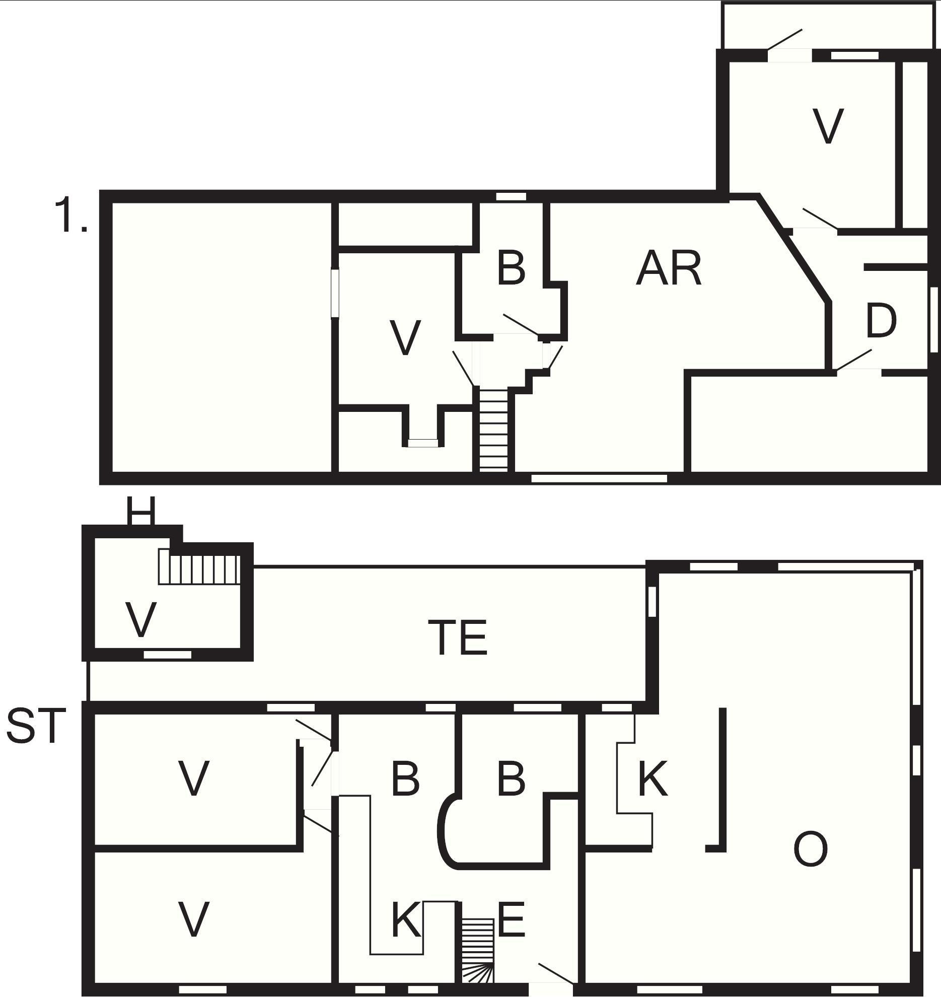 5 Soveværelser: (1DS)+(1DS)+(1DS+1S)+(2S)+(1DS)