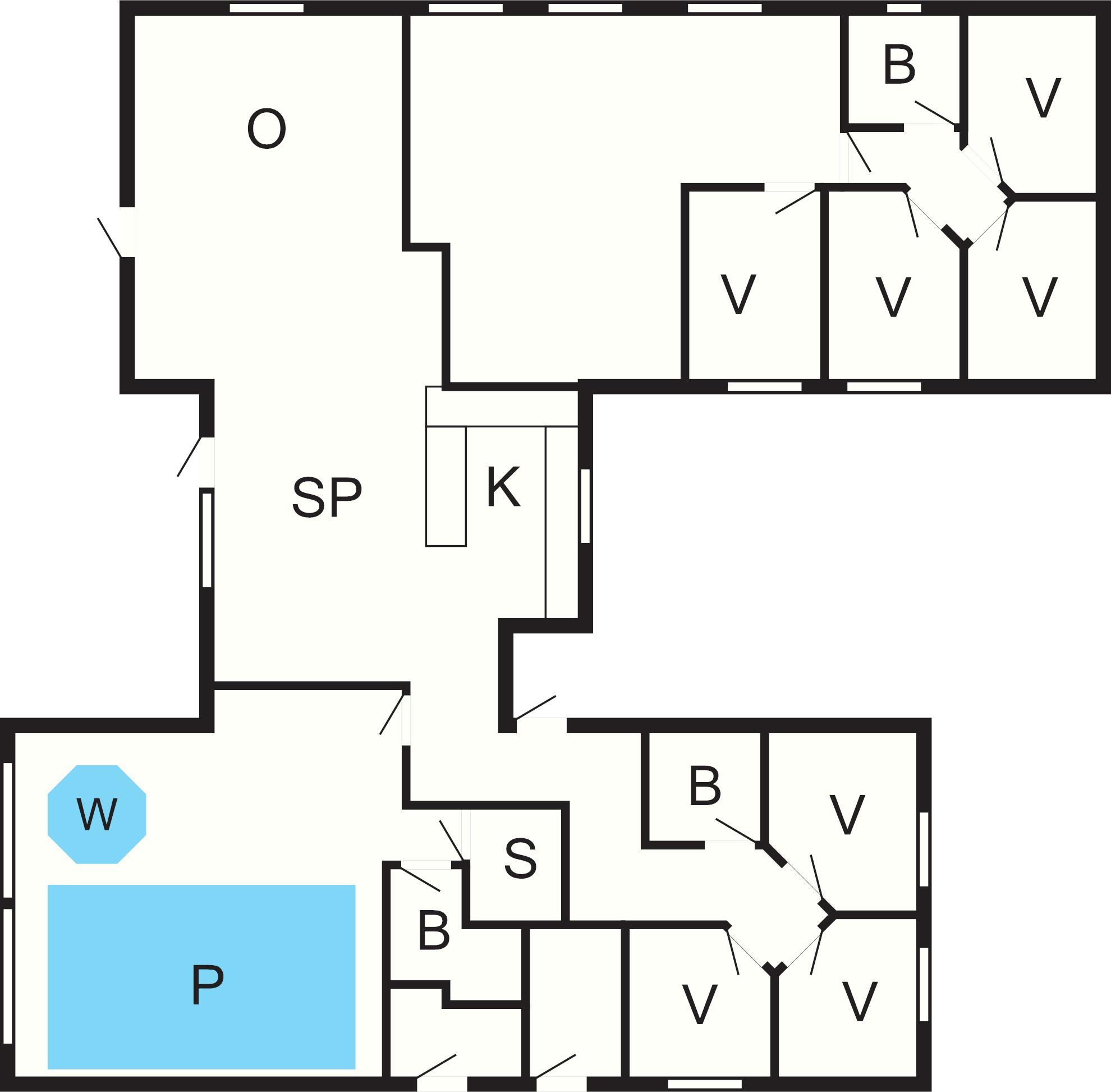 Husets poolafdeling indeholder både stor swimmingpool, svømmetræner, stort indbygget spabad og sauna med plads til 6 personer. Swimmingpoolen er på 18 m² og med rutschebane til børnene.