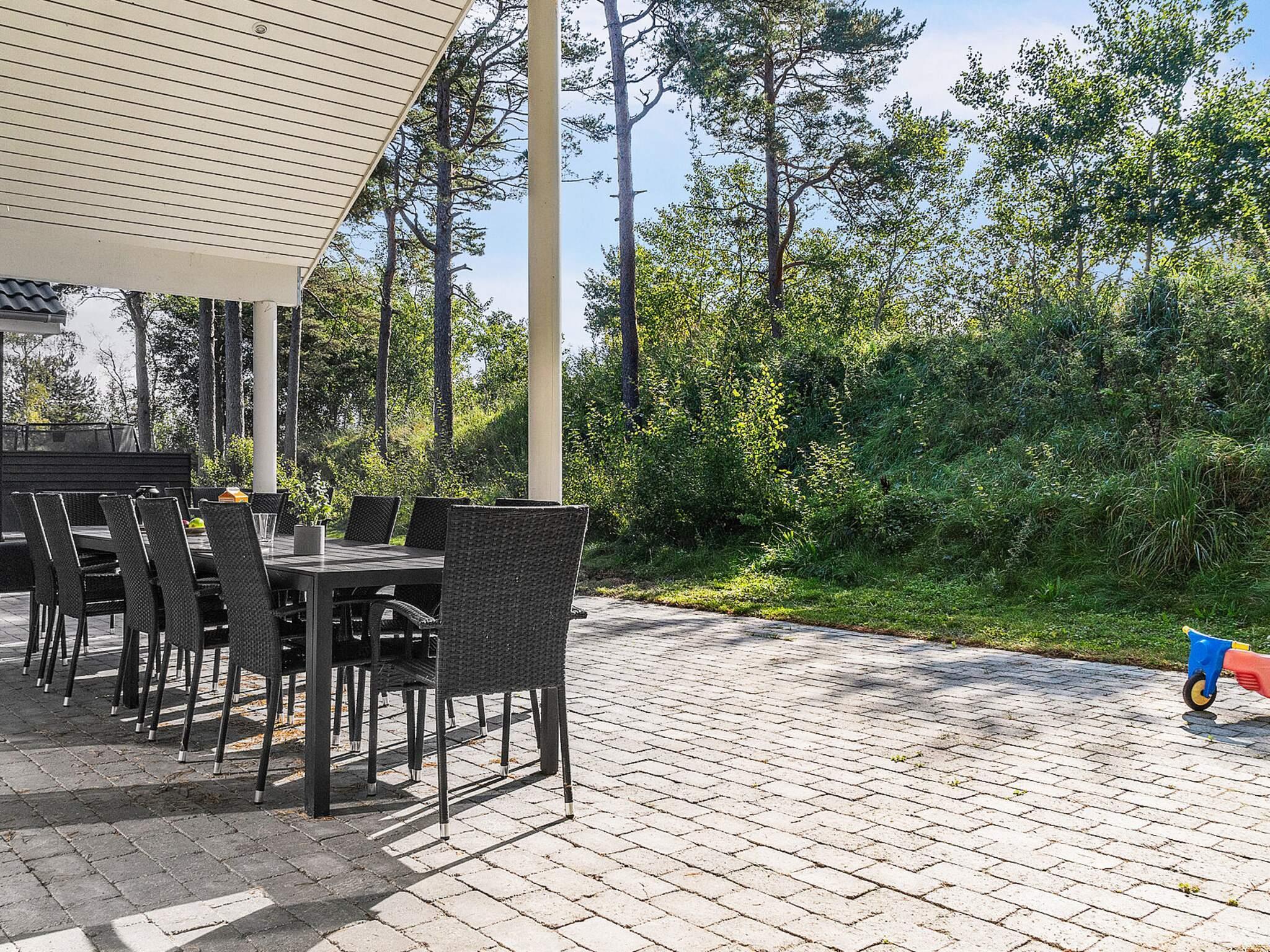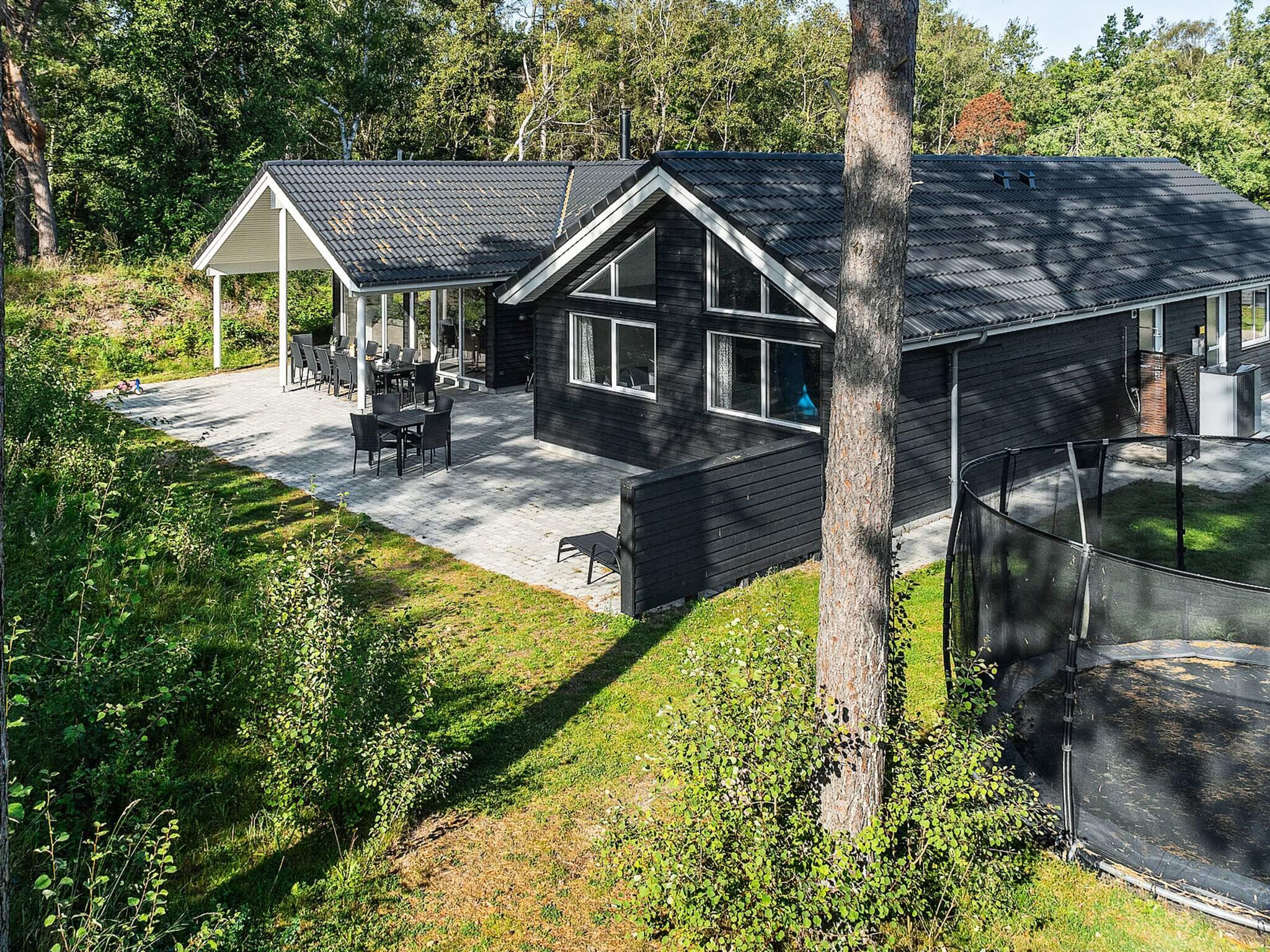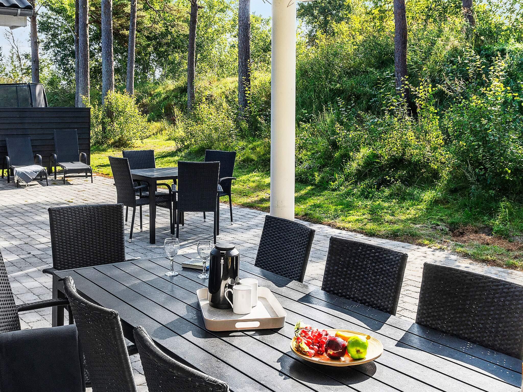 Den delvist overdækkede terrasse giver rig mulighed for at nyde den danske sol. Der er havemøbler og grill, så I kan få en grillaften. Derudover er der en trampolin i jorden og en udendørs bruser i haven, hvor du kan nyde en kølig skylning på varmere dage eller efter en tur til stranden.