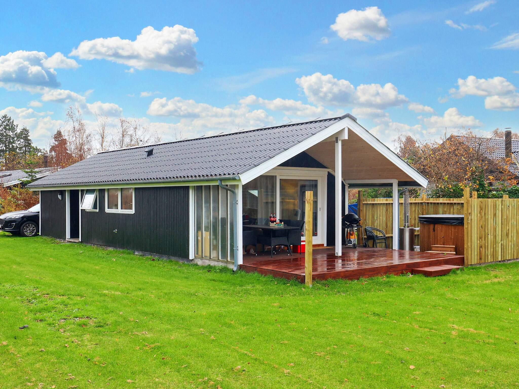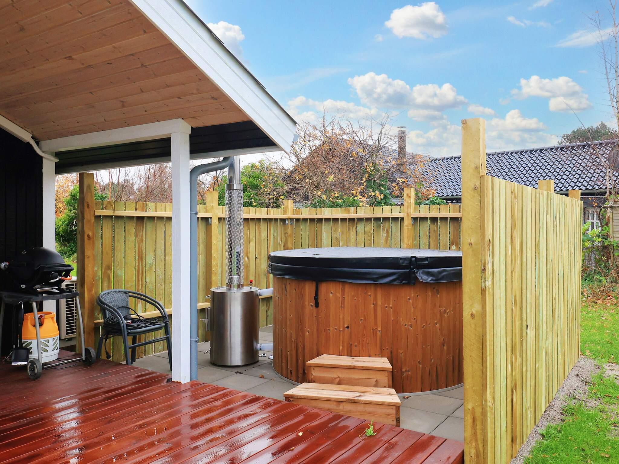 En meget hyggelig halvt overdækket terrasse med god plads til at sole og hygge sig samt grill. Dejlig stor have med plads til leg og hygge og til børnene er der gyngestativ.Efter en lang dag på stranden eller på tur rundt på Lolland og Falster kan I benytte vildmarksbadet, som har plads til 4 personer. Udlejes ikke til ungdomsgrupper.