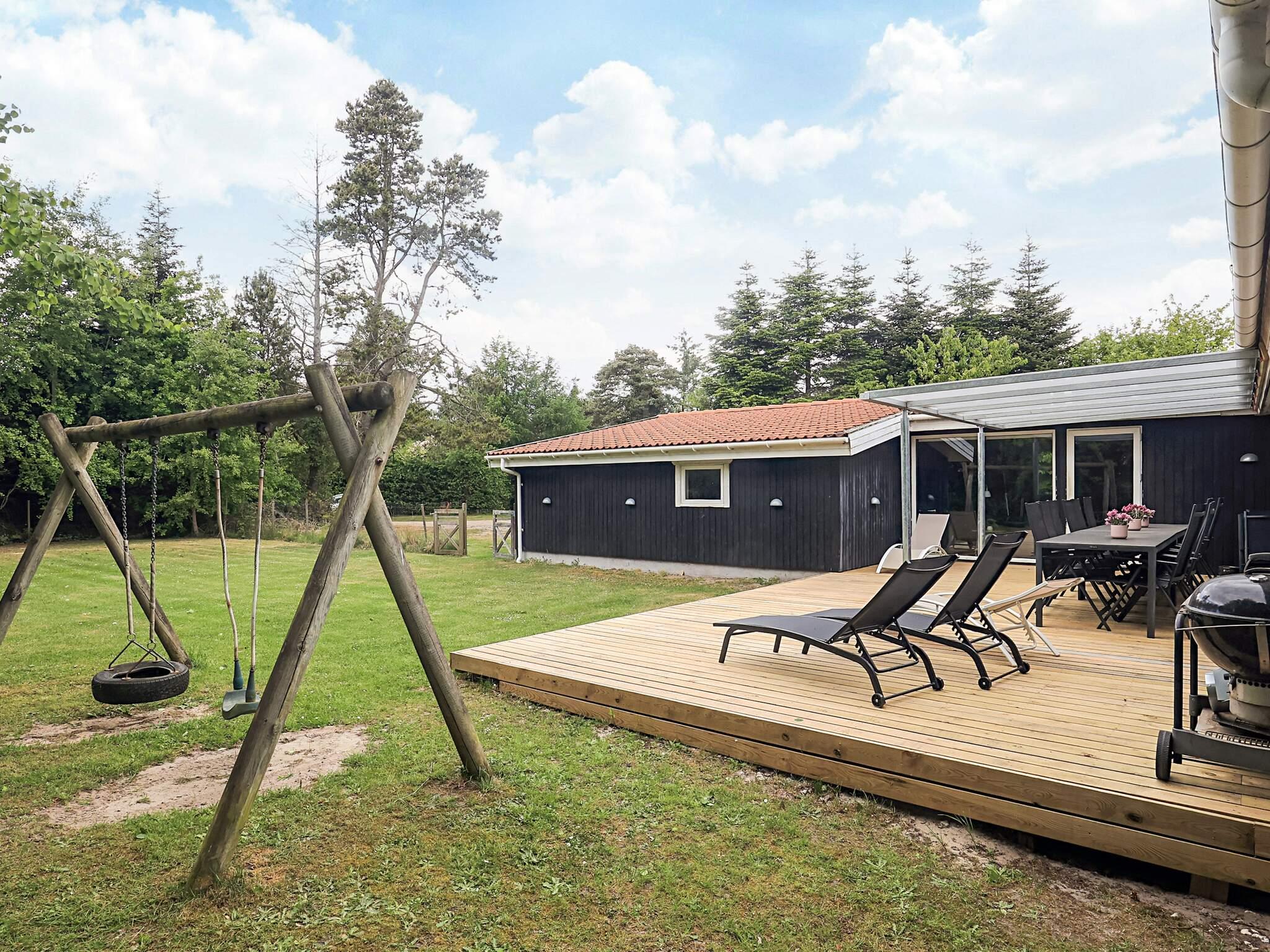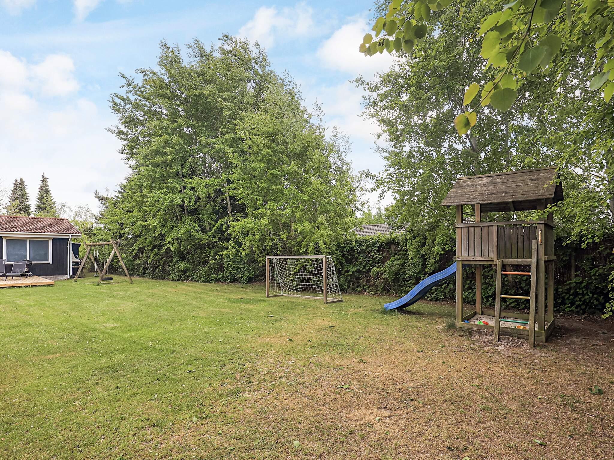 På den 1400 m2 store, børnevenlige grund er der god plads til boldspil og leg. Der er 18 m² åbent terrasseareal med god plads til sol, hygge og gode grillaftener. Gynge og sandkasse til de små.