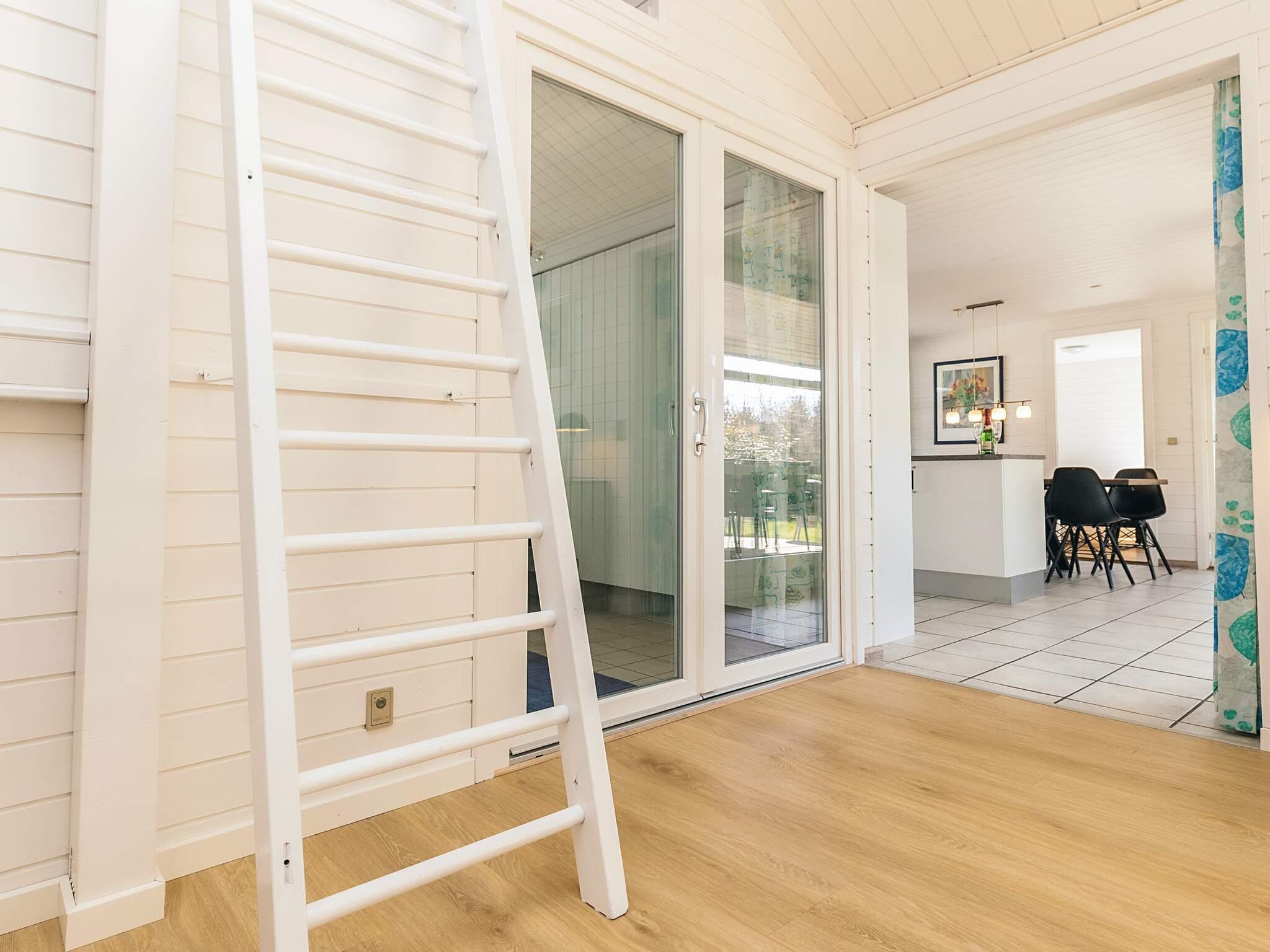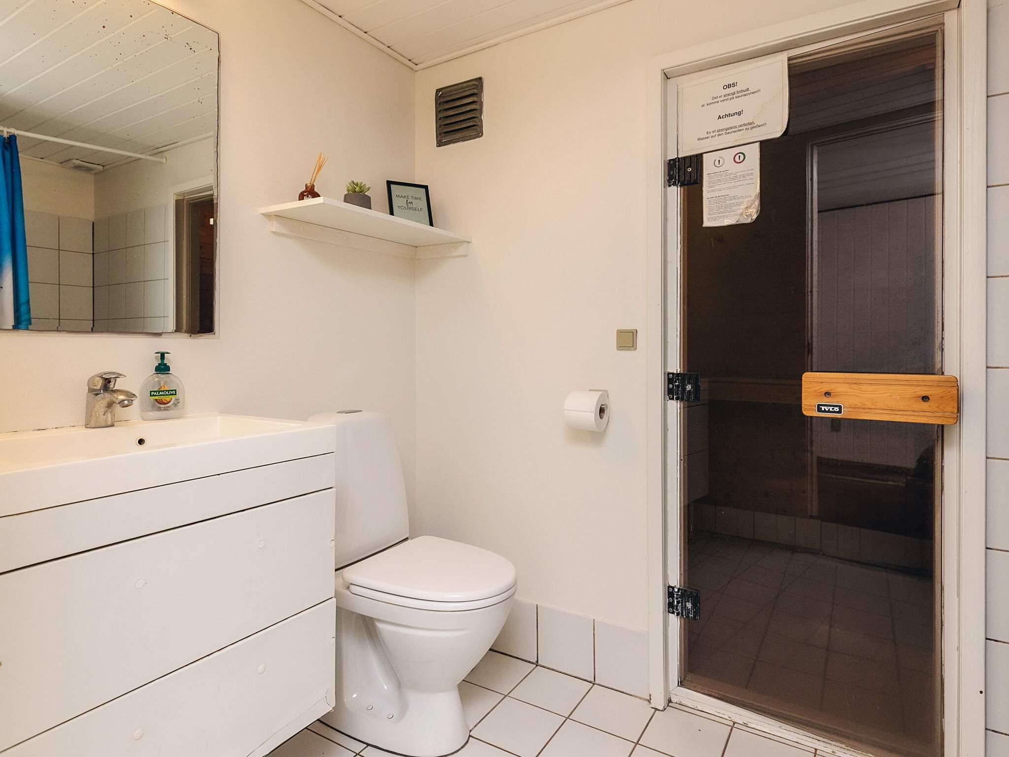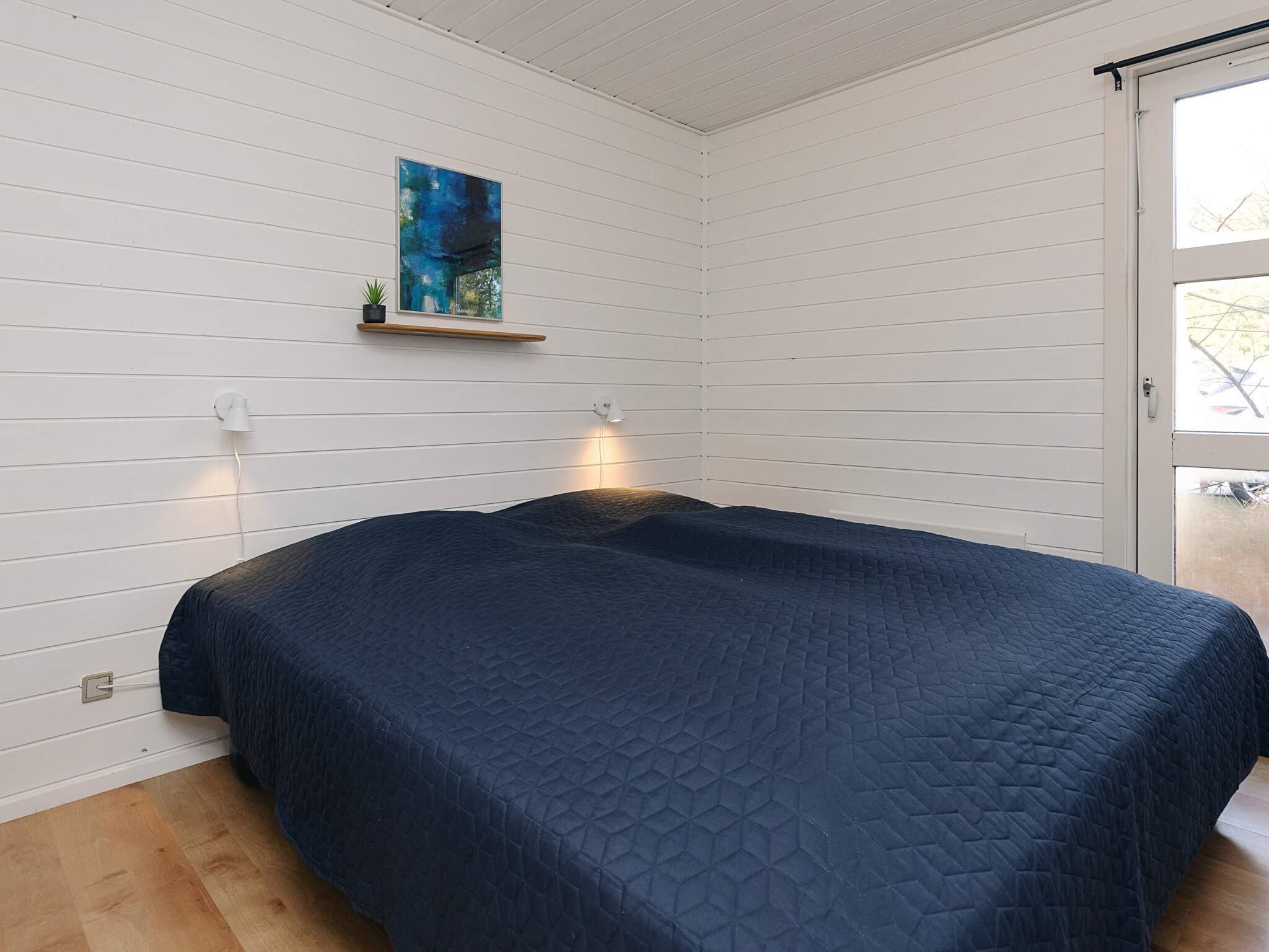 Sommerhuset har fire soveværelser med dobbeltsenge og hems med to madrasser samt tv med dvd-afspiller. Der er to badeværelser med toilet, bruser og håndvask, hvoraf det ene også har vaskemaskine og tørretumbler.