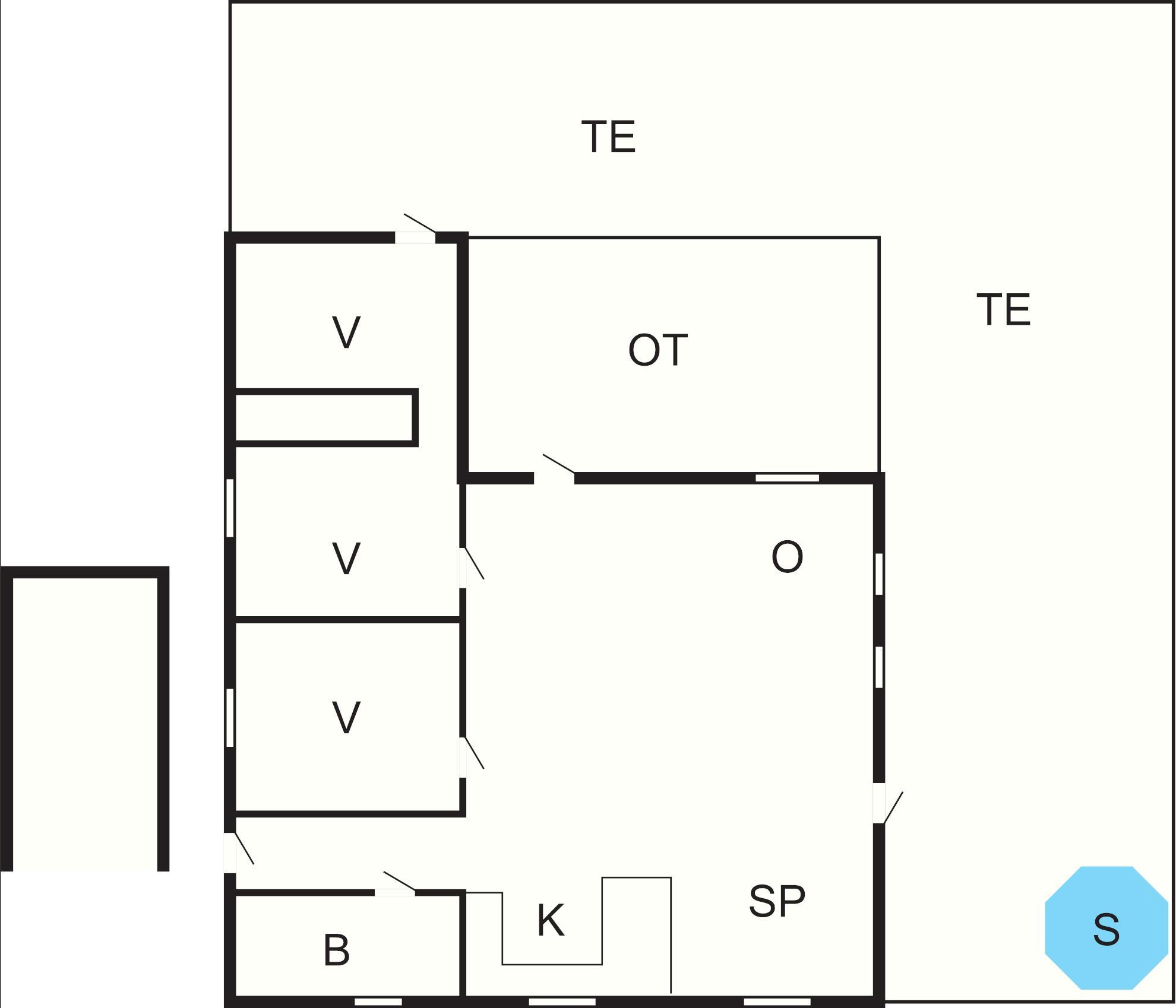 Sommerhuset har åbent køkken med bl.a. kaffemaskine, elkomfur med ovn,opvaskemaskine,køleskab samt vaskemaskine. I opholdsstuen, er der tv med Chromecast samt trådløst internet. Der er tre soveværelser i sommerhuset, to med dobbeltseng og et med en køjeseng, på badeværelse er der toilet, håndvask samt bruseniche.