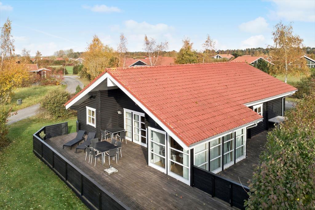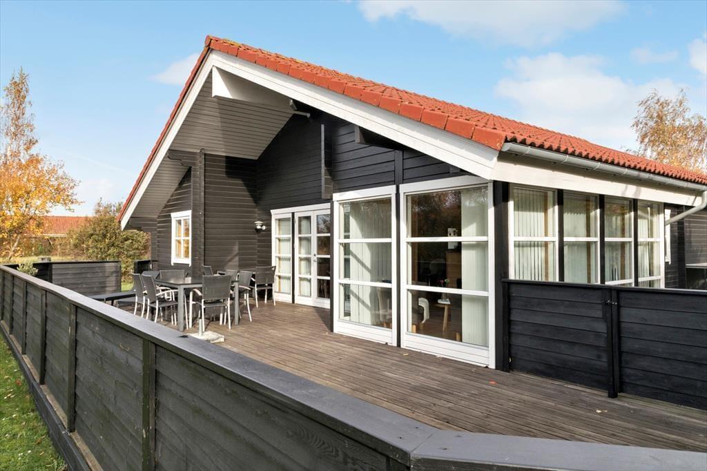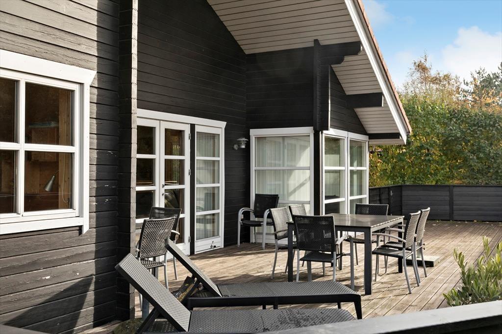 Fra køkken-alrummet af er der udgang til den dejlige træterrasse og haven, som indeholder både havemøbler og grill.