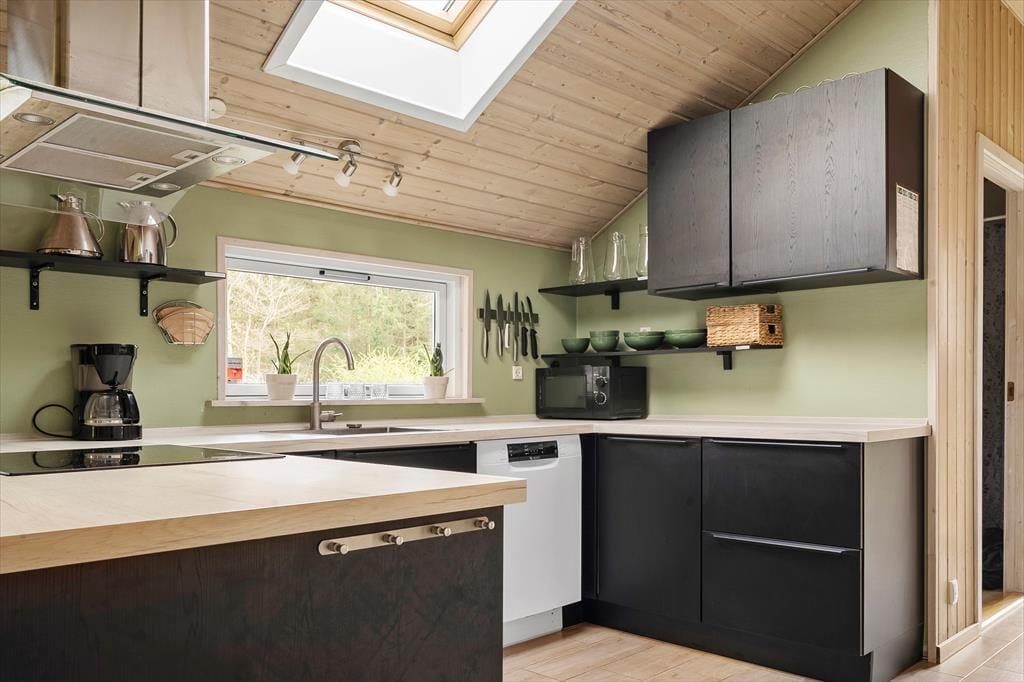 Sommerhuset egner sig til 10 personer. Sommerhuset er 141 m² og er bygget i 2005. Sommerhuset byder på en entre, 4 gode soveværelser, med dobbeltseng i 2 af soveværelserne, og 2 enkeltmandssenge i de sidste 2 soveværelser. Derudover er der en hems med 2 sovepladser. Dernæst er der 2 badeværelser, med wc, bruser, vaskemaskine og tørretumbler i det andet og wc, bruser og sauna i det andet. Dernæst har sommerhuset det skønne køkken-alrum med spiseafdeling og sofaområde. Fra stuen er der udgang ti husets skønne terrasse.