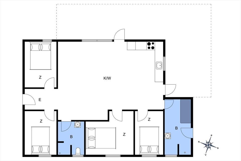 Sommerhuset egner sig til 10 personer. Sommerhuset er 126 m² og er bygget i 2024. Sommerhuset byder på en entre, 4 gode soveværelser med dobbeltsenge i alle fire soverum. Derudover er der 2 badeværelser, det ene med wc og bruser, det andet med wc, bruser og badekar med kig ud til husets skønne have. Til sidst har sommerhuset det skønneste køkken-alrum, med spiseafdeling og sofaområde. Fra køkkenet er der udgang til husets skønne terrasse.