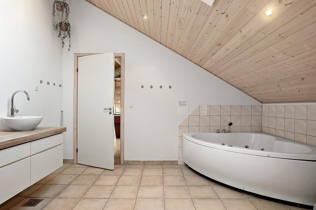 På det ene badeværelse har du muligheden for at komme i spa efter en lang dag fyldt med oplevelser her på Falster.