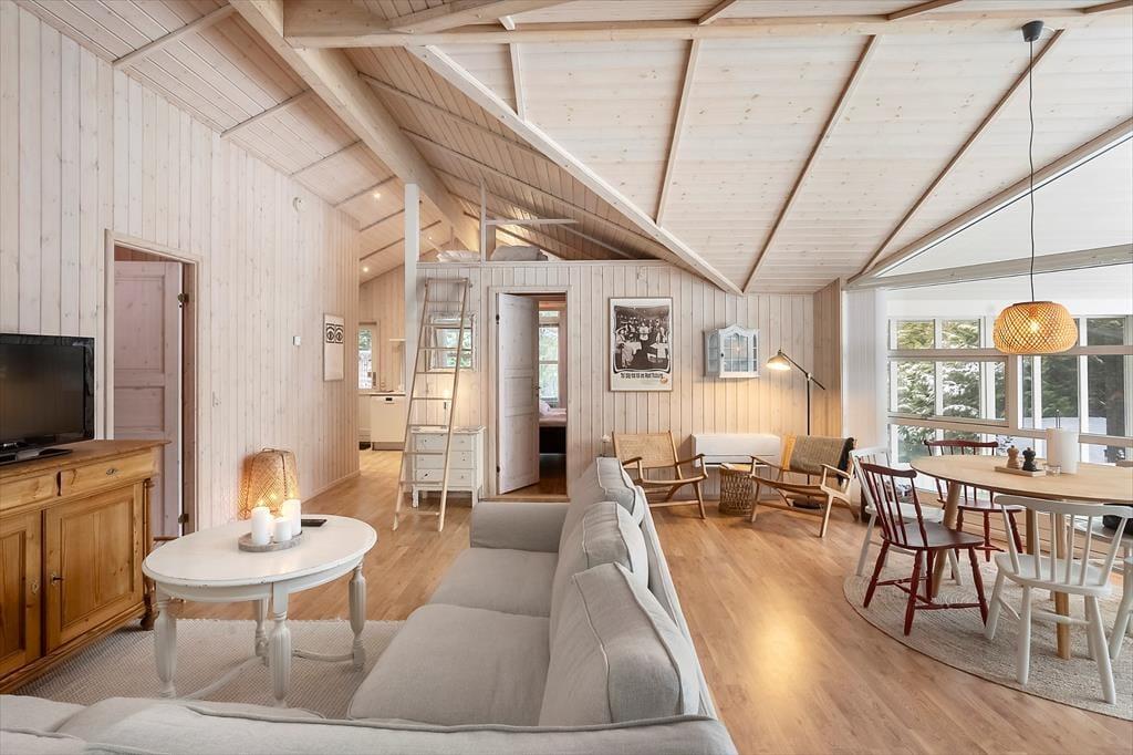 Den store og rummelige stue danner rammen om hyggelige aftener med spil, film eller gode samtaler. Derudover får I en skøn havestue, hvor I kan nyde lyset og udsigten til haven – uanset vejret. Det lyse og moderne køkken er pænt indrettet og giver gode rammer for fælles madlavning og lange feriemiddage.