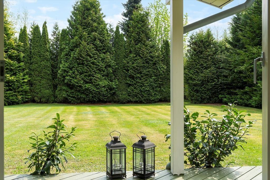 Udendørs venter en stor og lækker have med god randbeplantning, som skaber privatliv og læ. Her er masser af plads til leg, afslapning og lange sommeraftener på terrassen.