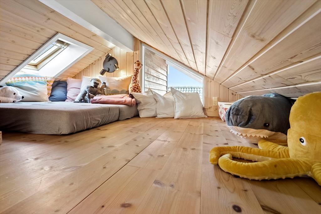 Ydermere indeholder huset en god hems, indrettet perfekt som en hule og opholdsrum for børnene, hvor de kan slappe af og spille playstation i fred for de gamle.