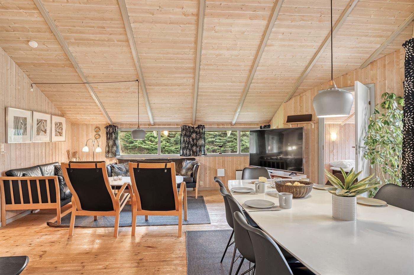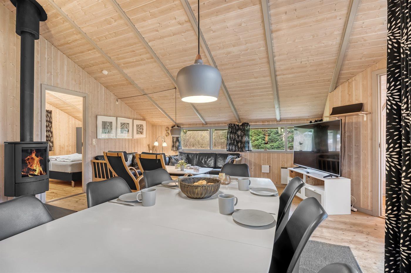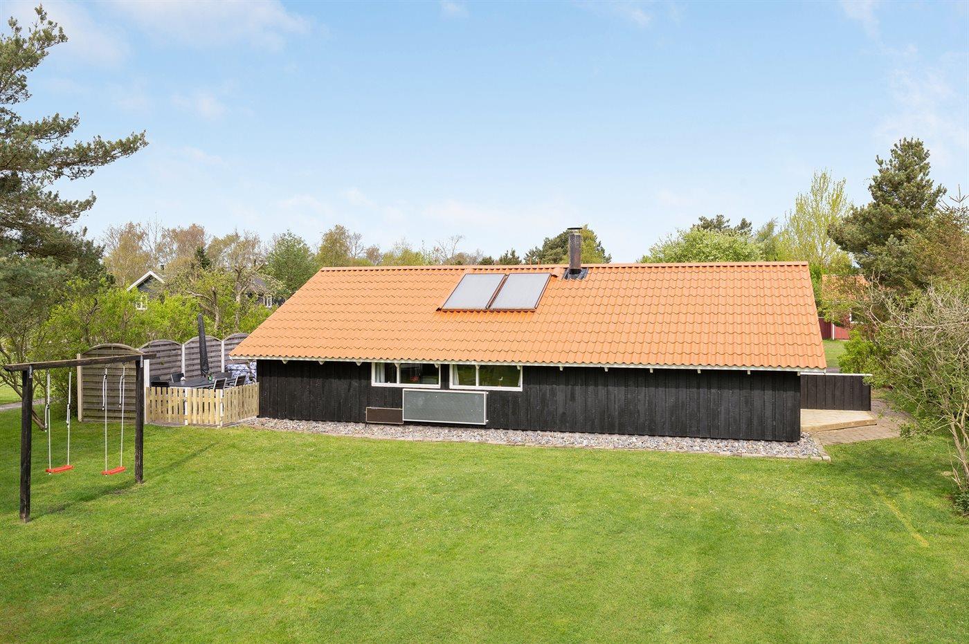 Huset ligger på en tilplantet naturgrund med ugenert solgård samt dejlig terrasse med havemøbler. Det store indbydende badeværelse med opvarmet marmorgulv er indrettet med 2-pers. spa, bruseniche, vaskemaskine og direkte adgang til husets sauna. Desuden gæstetoilet. Dejligt køkken med køle/ frys opvaskemaskine og mikrobølgeovn. Flot møbleret opholdsstue, brændeovn, 65 tommer smart TV, Sony Playstation, Bluetooth højtaler, trådløs fiber internetforbindelse (egen computer skal medbringes). 4 soverum; 2 med dobbelt kontinentalsenge, 1 med 2 enkeltsenge og 1 med dobbeltseng (bredde 140 cm). Der er barneseng, høj barnestol, gynge og sandkasse. Huset er udstyret med solvarmeanlæg.